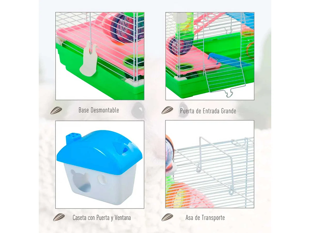Jaula madera para hámster natural 60x35x42cm PawHut