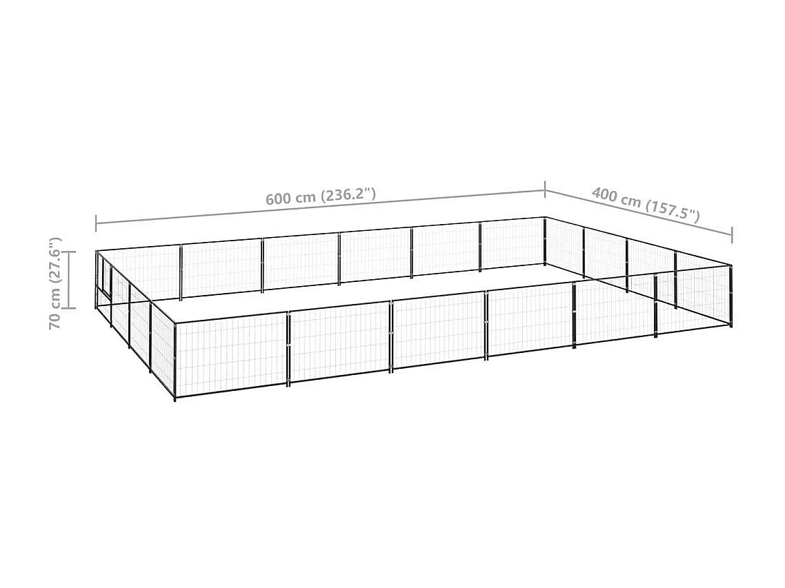 Jaula para perrera de exterior, recinto para parque de animales, perro, negro, 24 m², acero 02_0000512