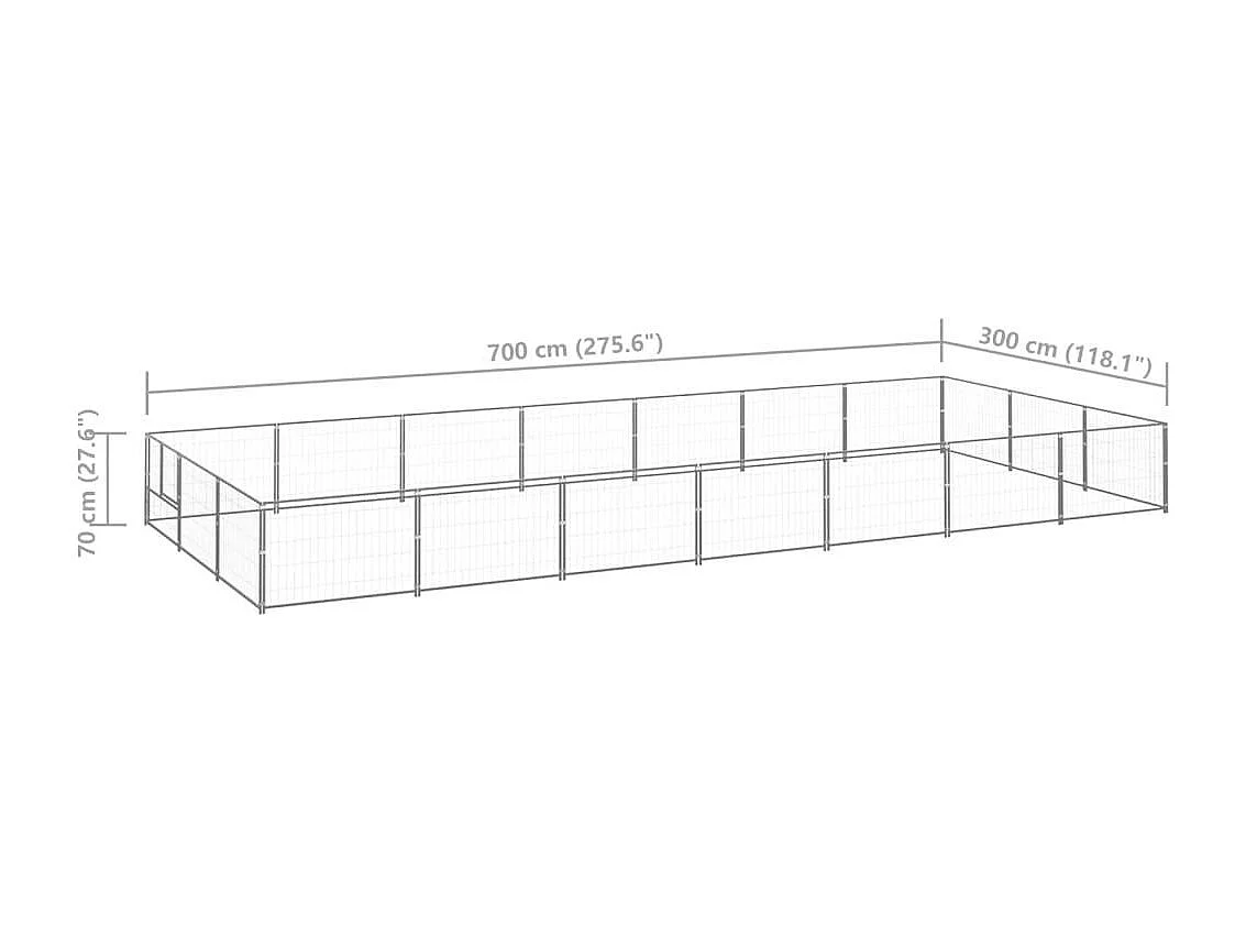 Jaula para perrera exterior, recinto para parque para mascotas, perro, plata, 21 m², acero 02_0000254