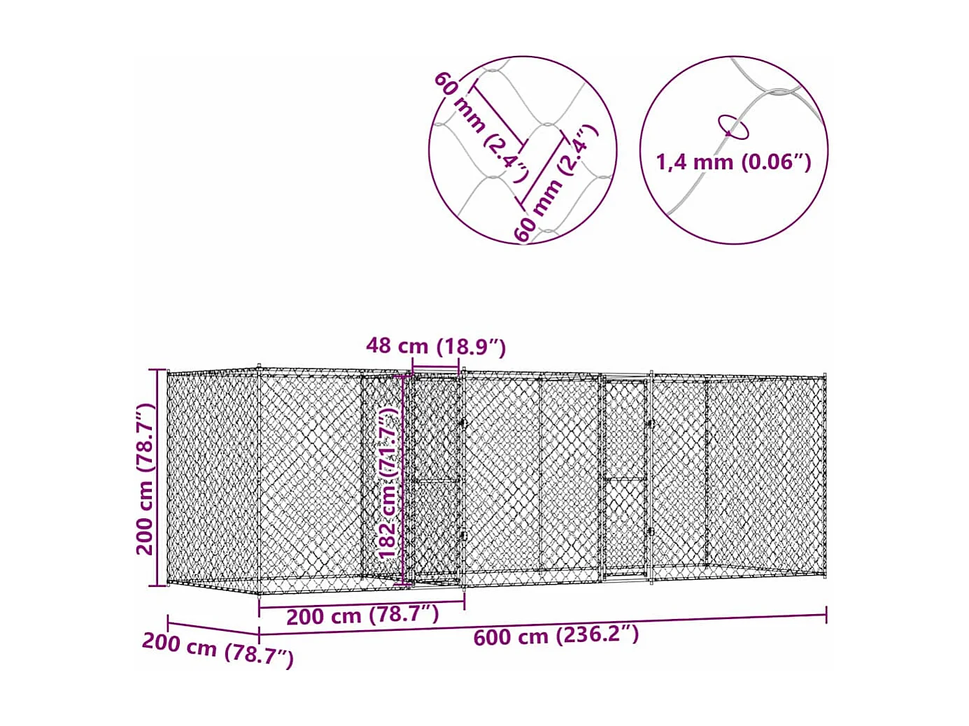 Jaula para perro Plateado 600 x 200 x 200 cm Acero Galvanizado