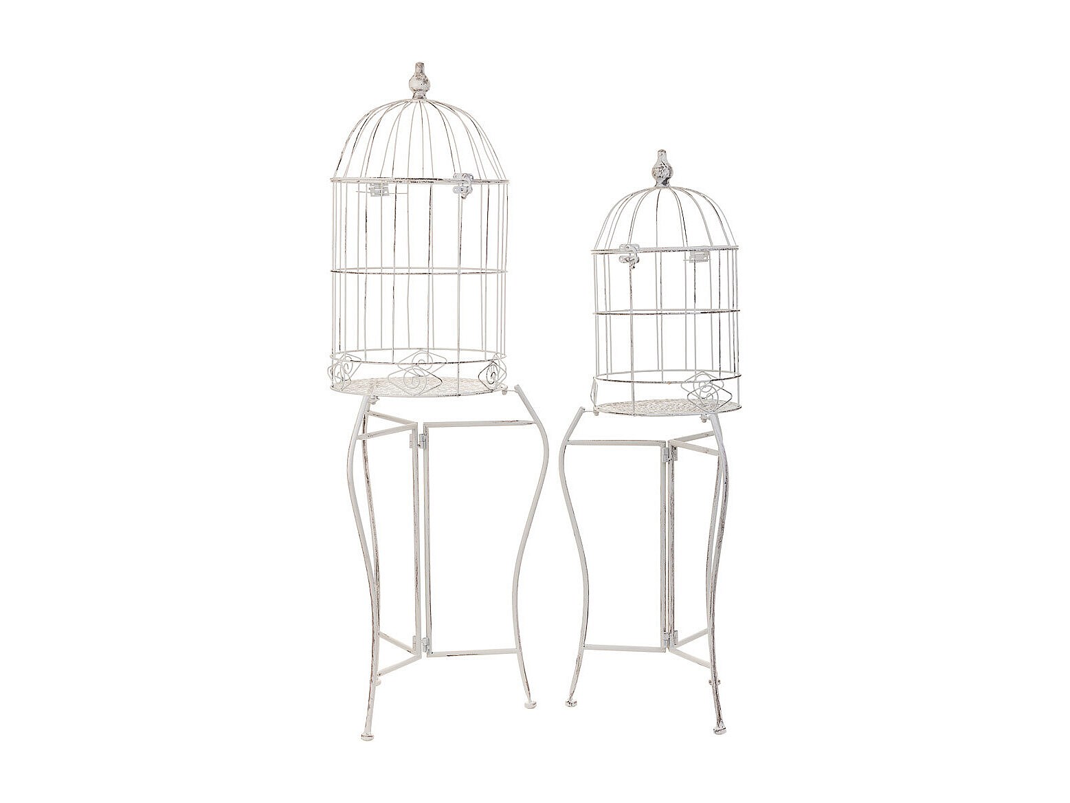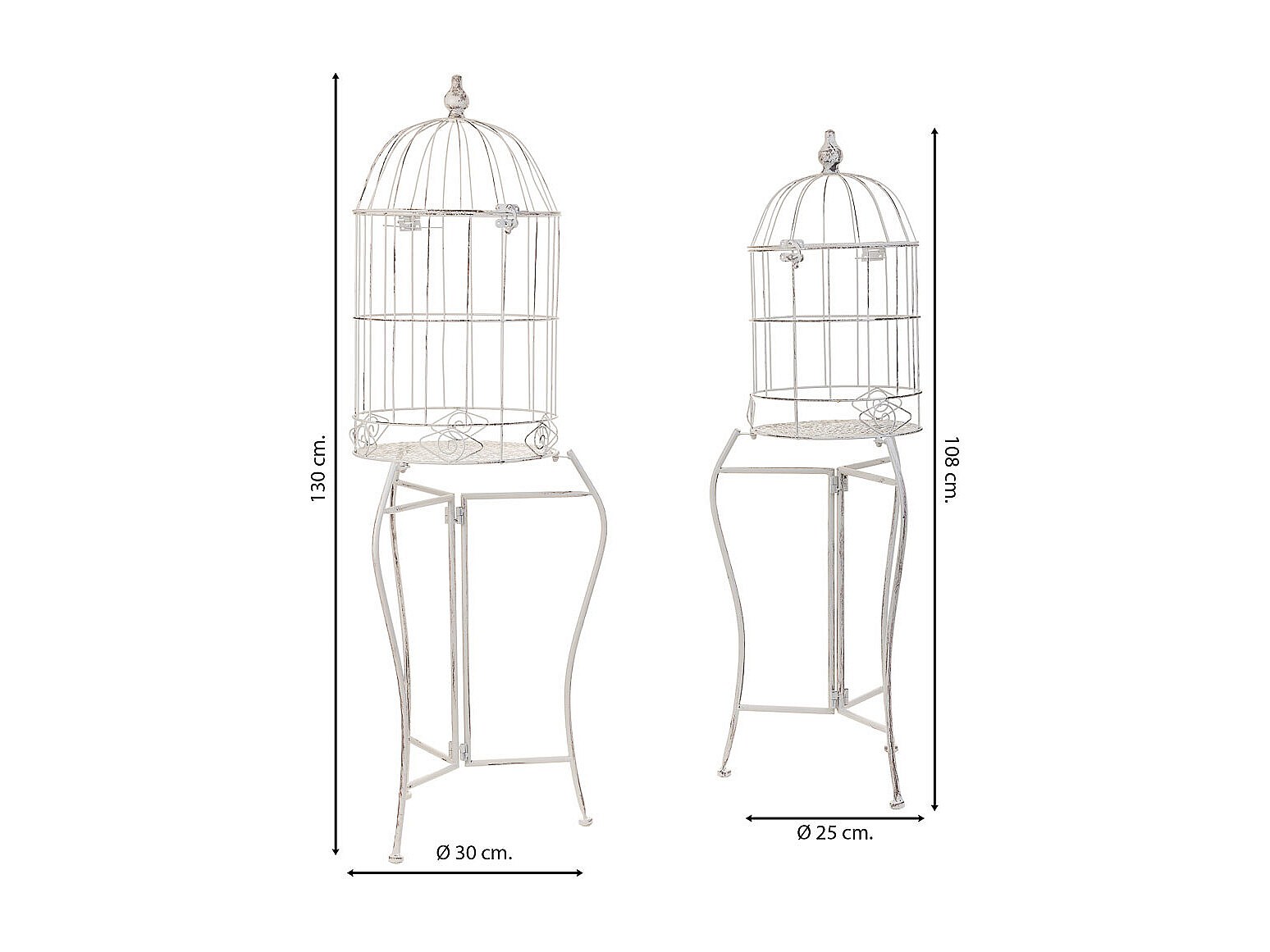 Jaulas maceteros de forja set 2 pzas blanco 30x30x130h-25x25x108h cm