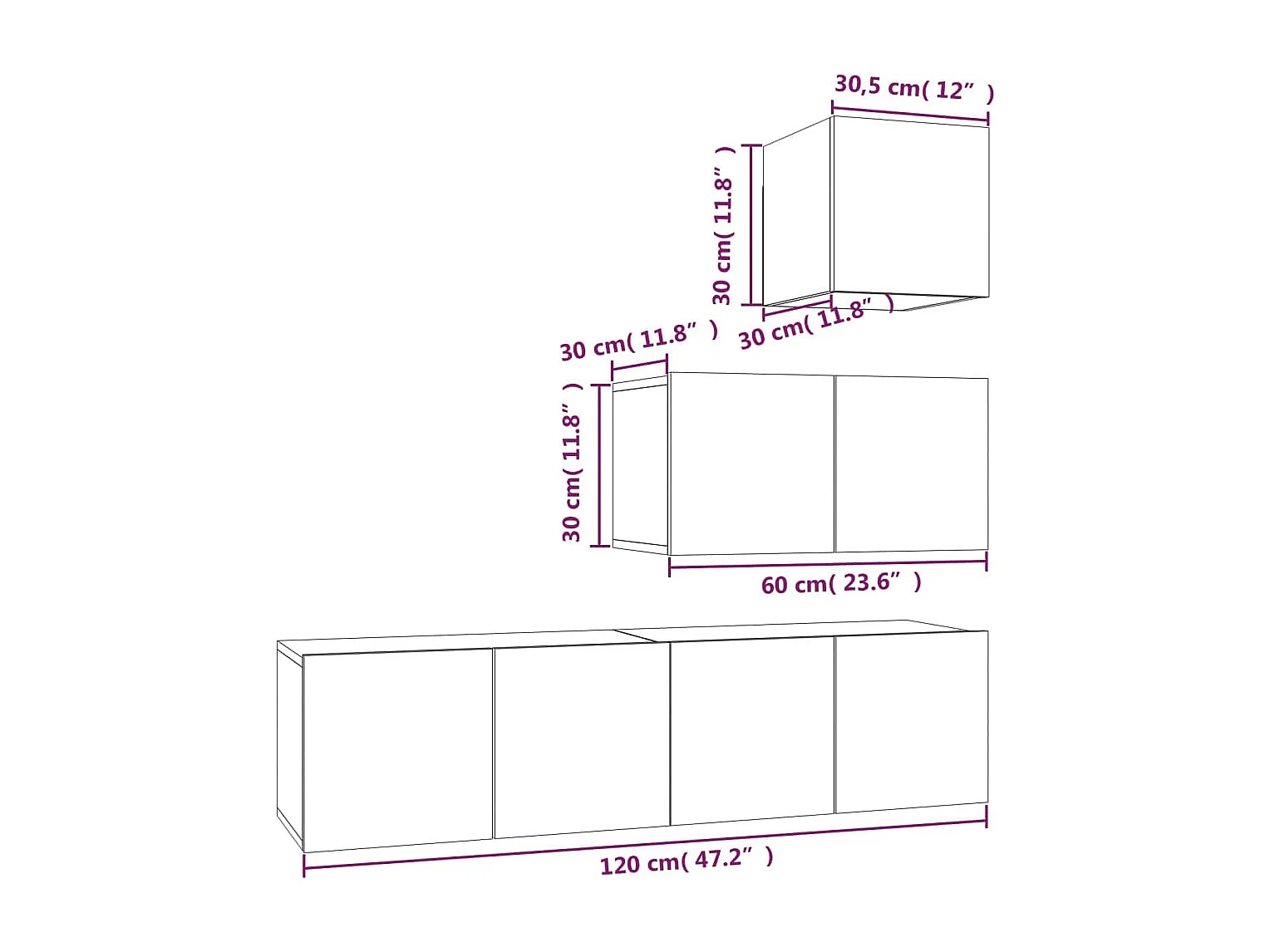Jean-Louis Set de muebles para TV 4 pzas madera contrachapada gris Sonoma