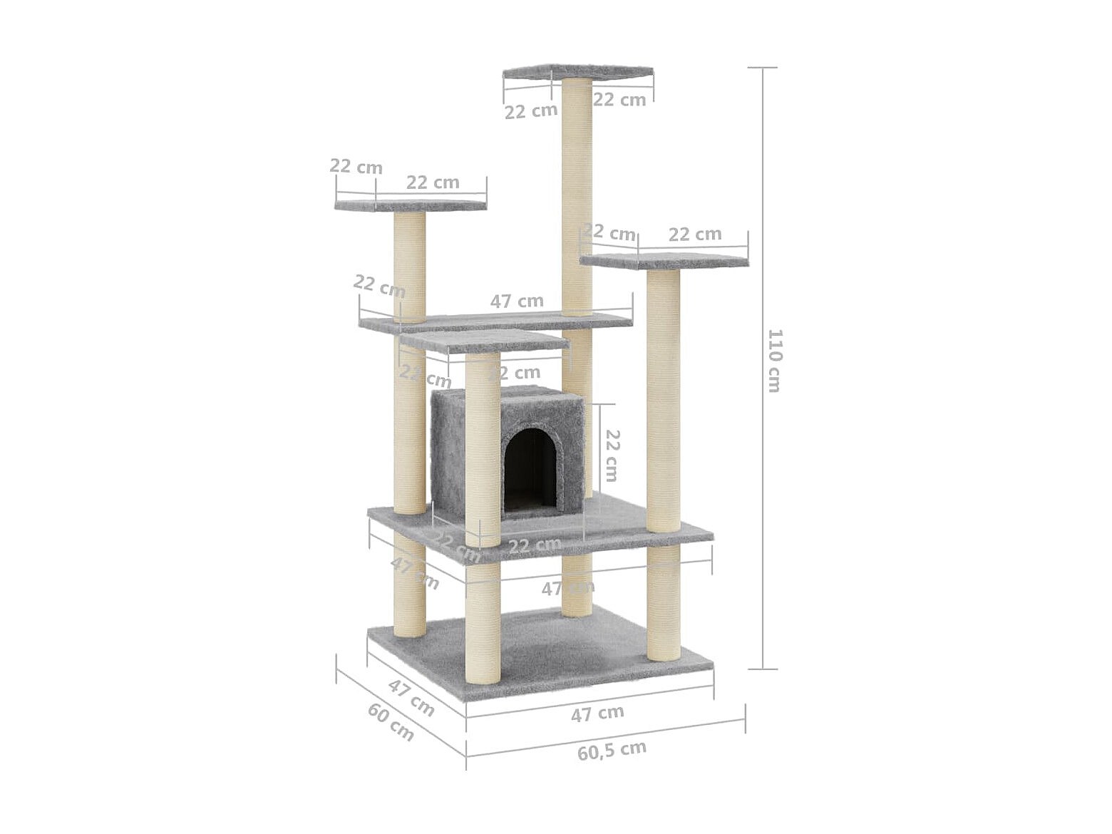 Jean-Paul-Antoine Rascador para gatos con postes de sisal gris claro 110 cm