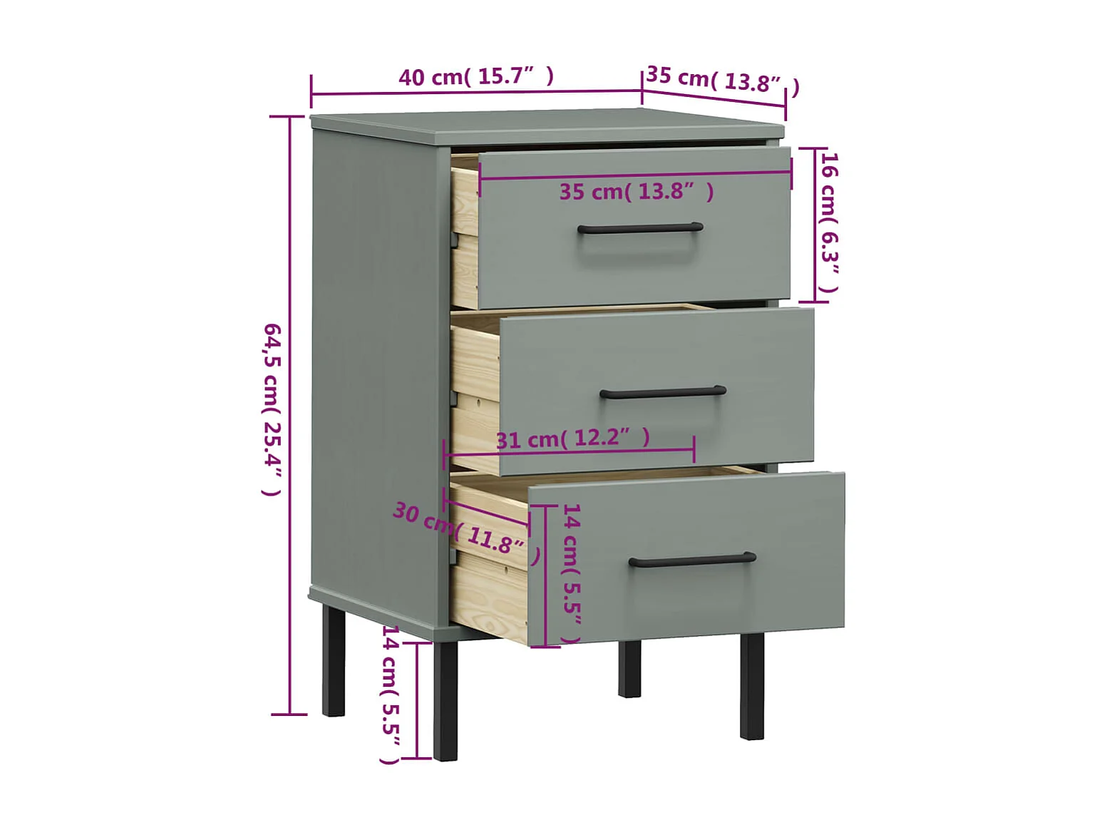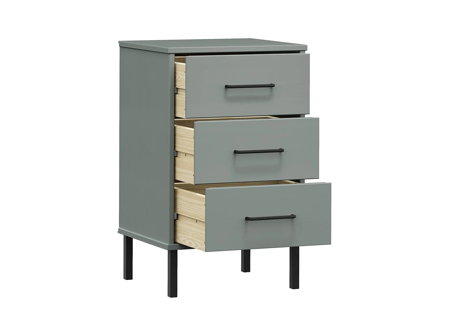 Jeanne-Marie Mesita de noche patas de metal madera maciza pino gris OSLO
