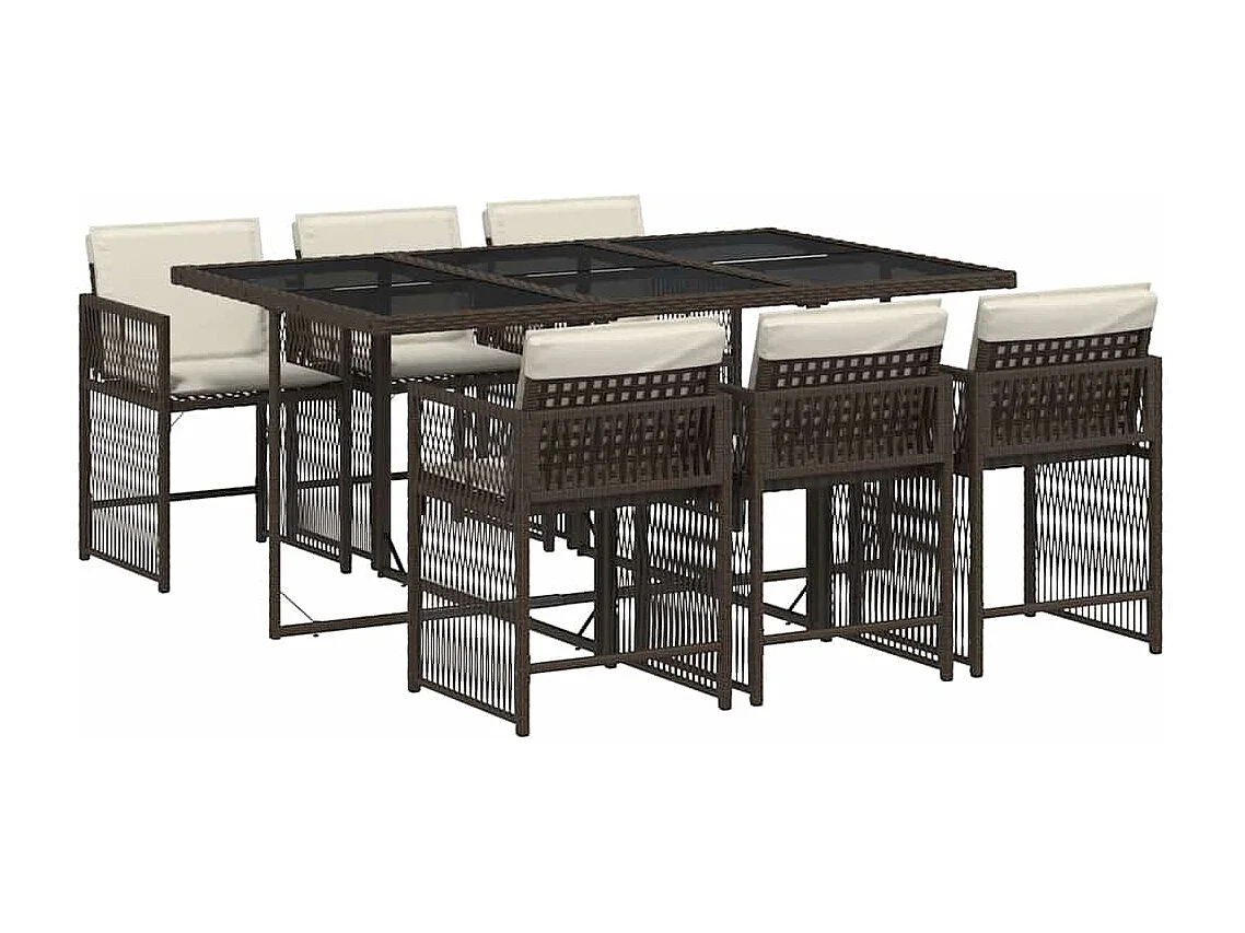 Sharif Set comedor de jardín 7 pzas con cojines ratán sintético marrón