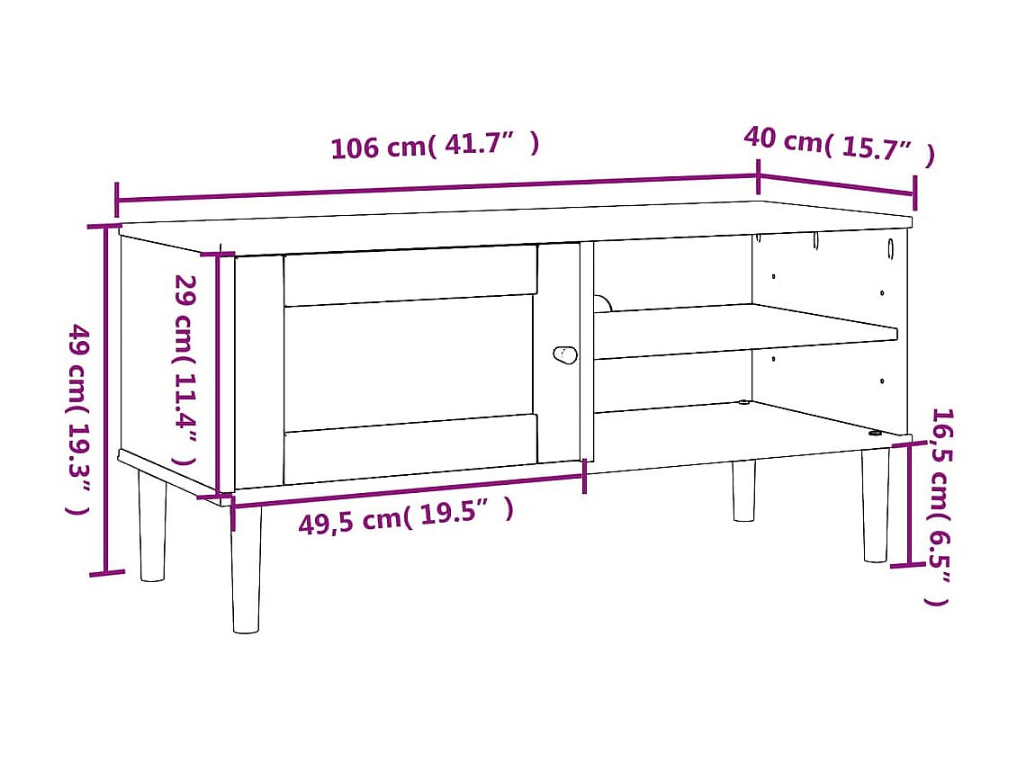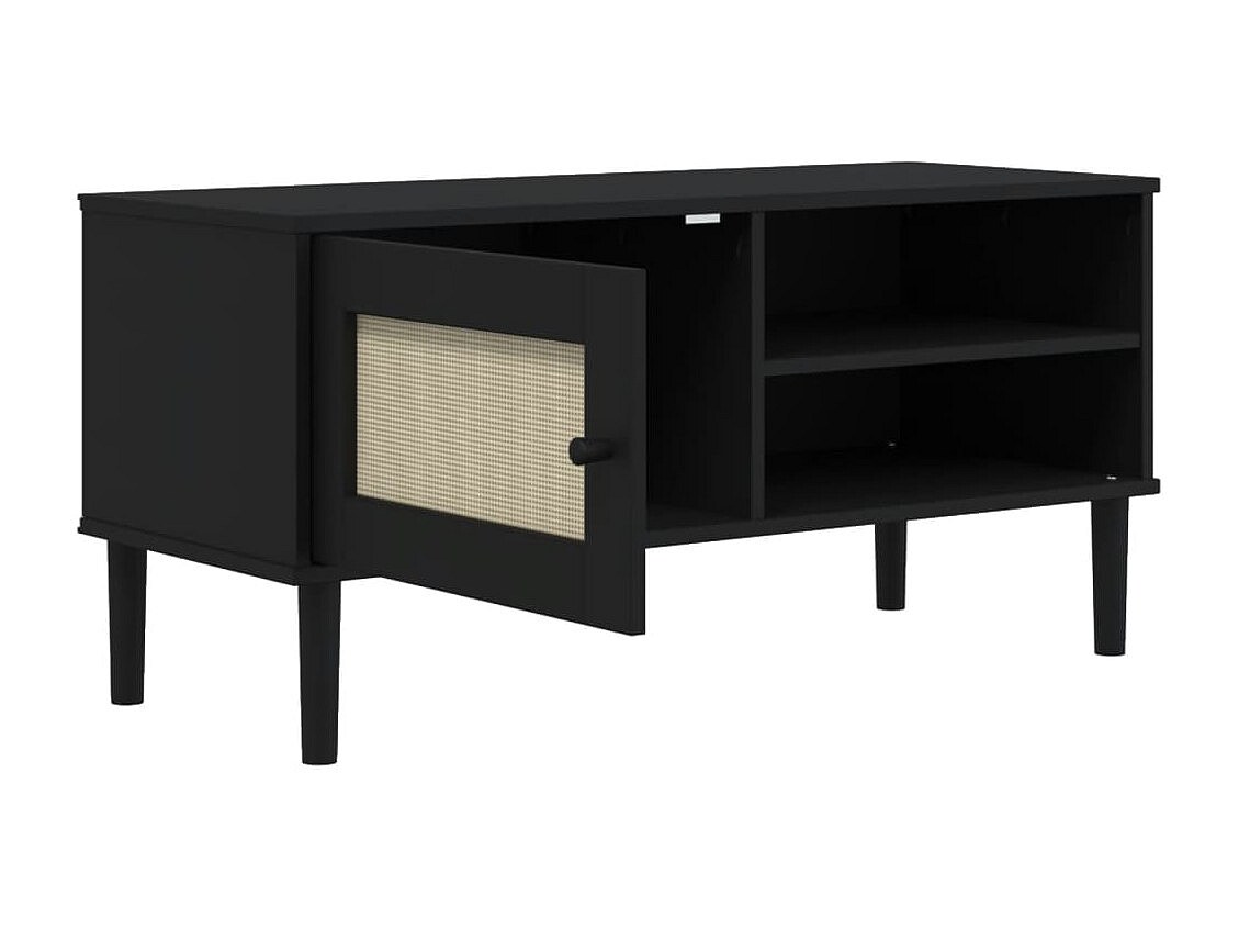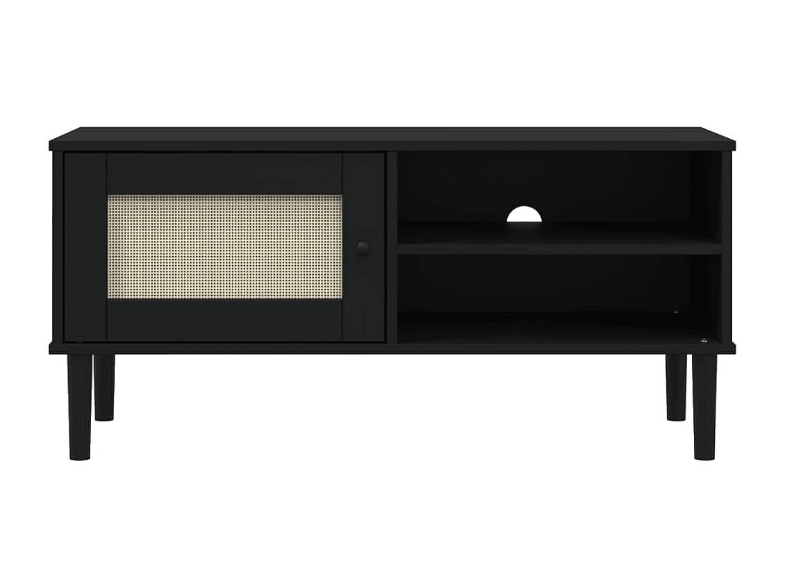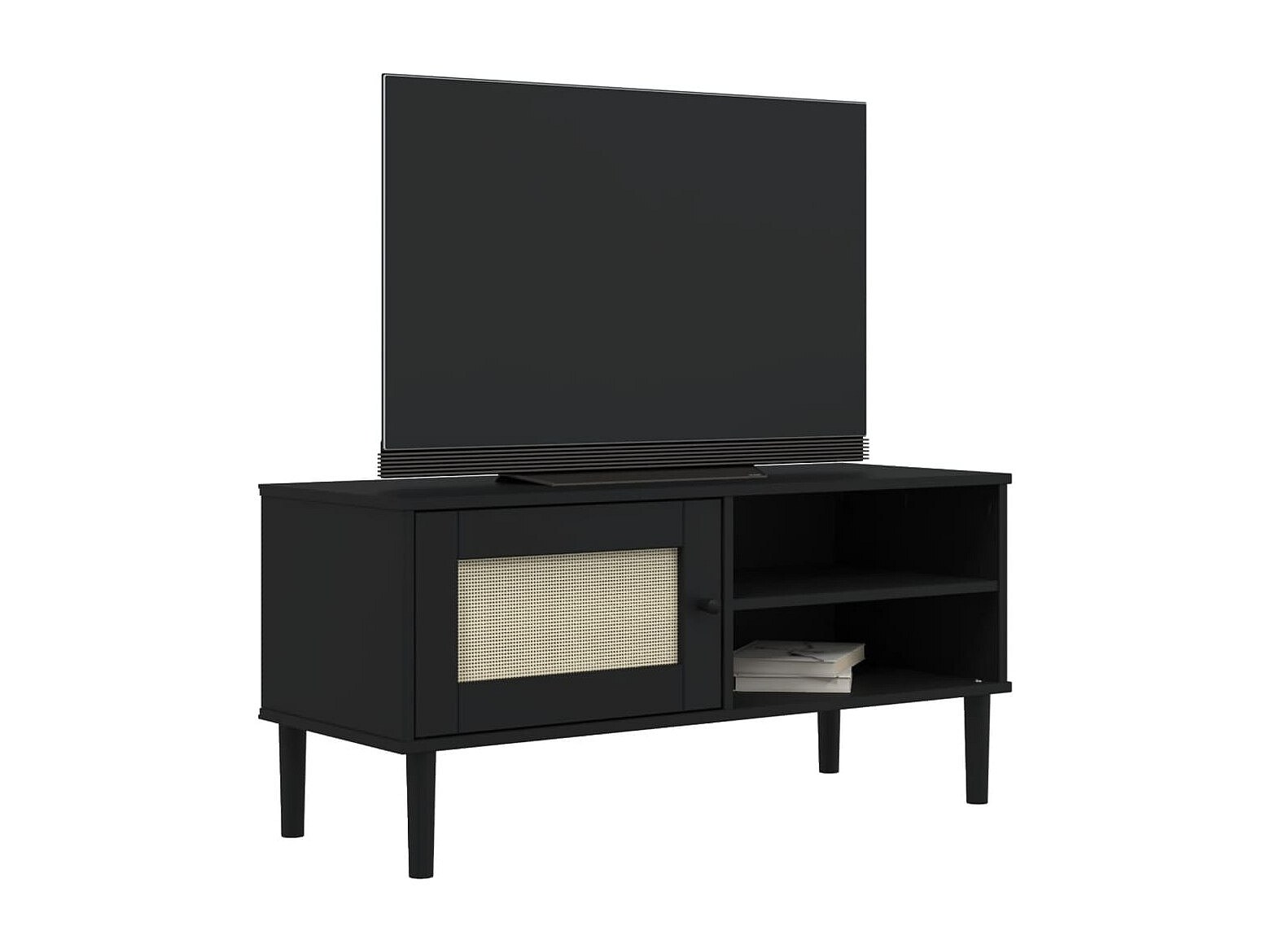 Jere Mueble de TV SENJA aspecto ratán madera pino negro 106x40x49 cm
