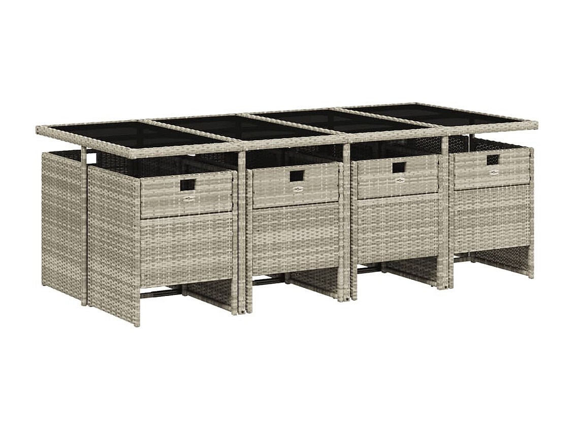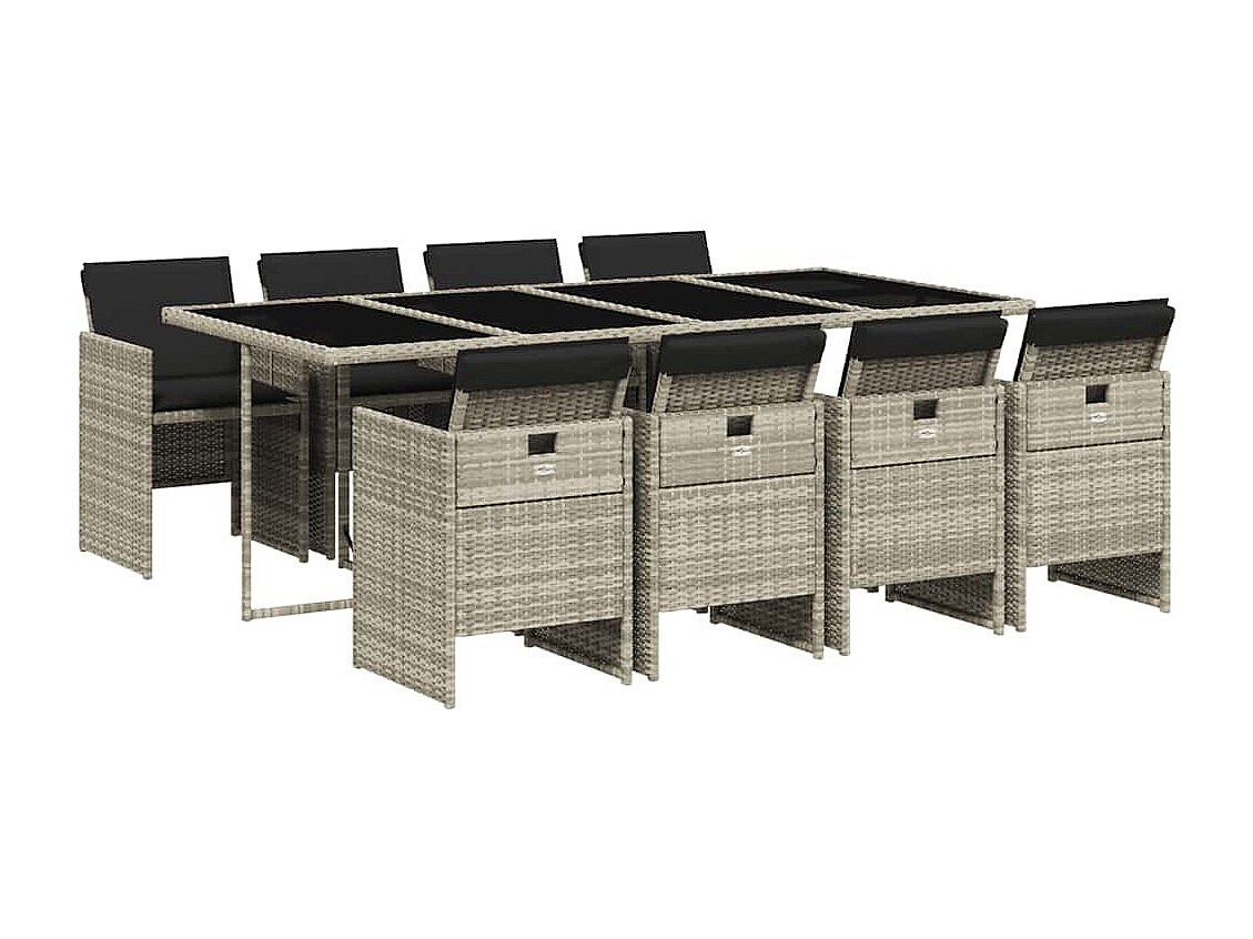 Ilo Set comedor de jardín 9 pzas cojines ratán sintético gris claro