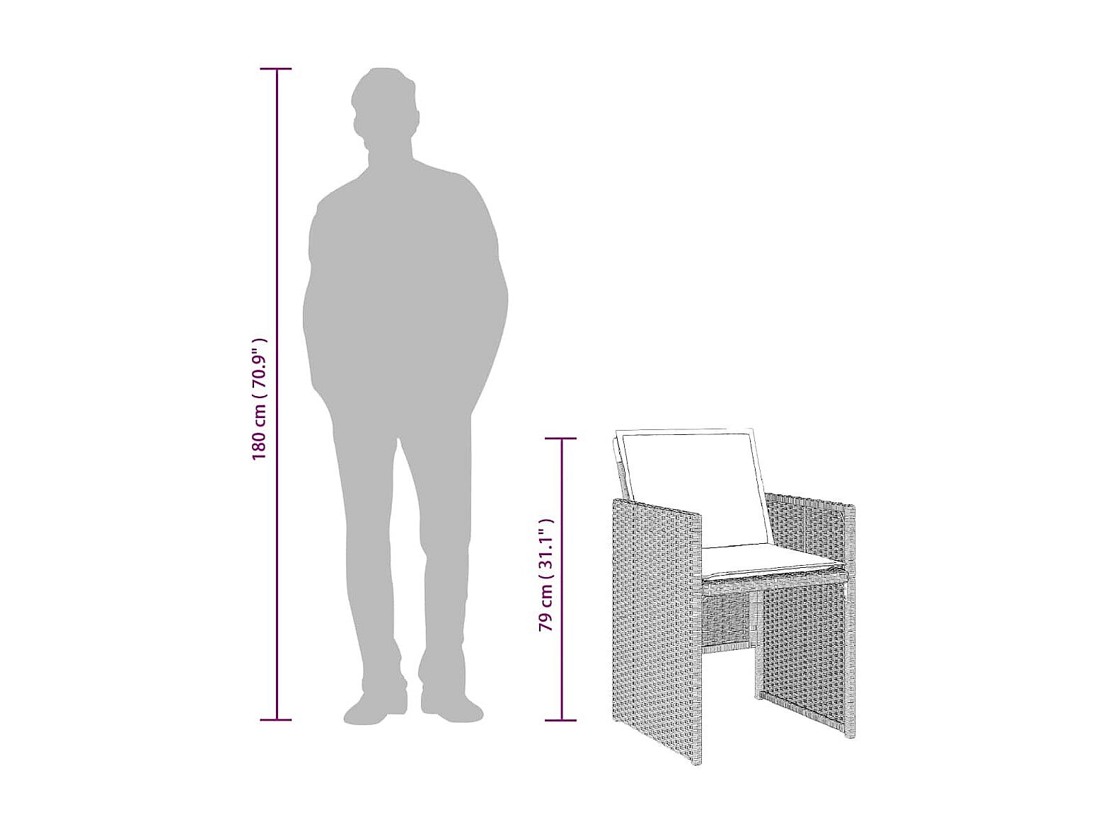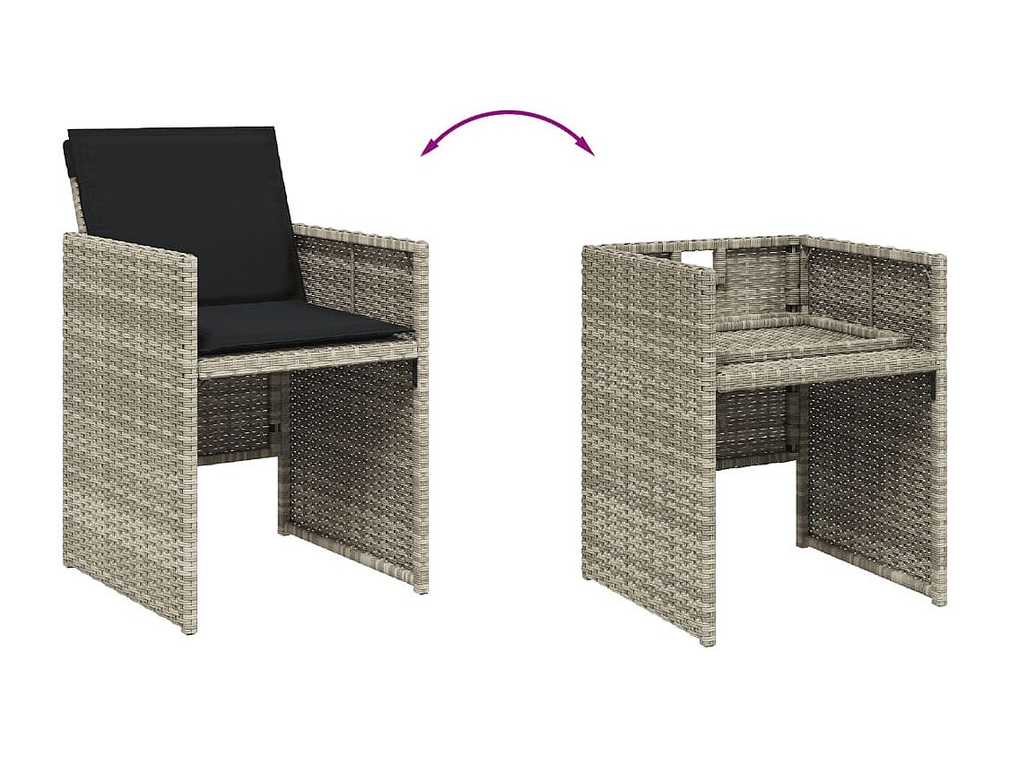 Zenn Set comedor jardín y cojines 13 pzas ratán sintético gris claro