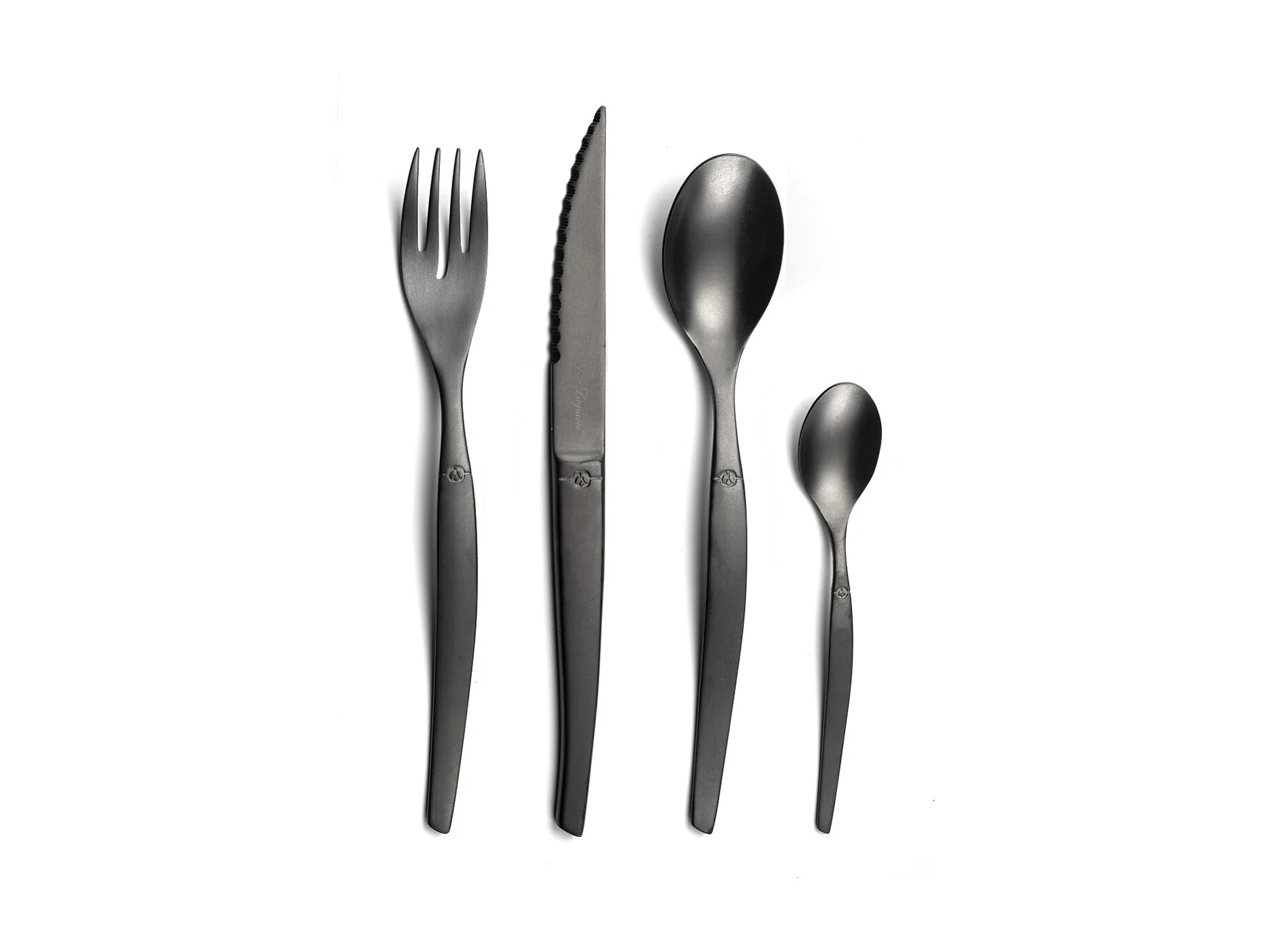 Cubertería Vintage Negra de Acero Inoxidable Mate de 16 Piezas