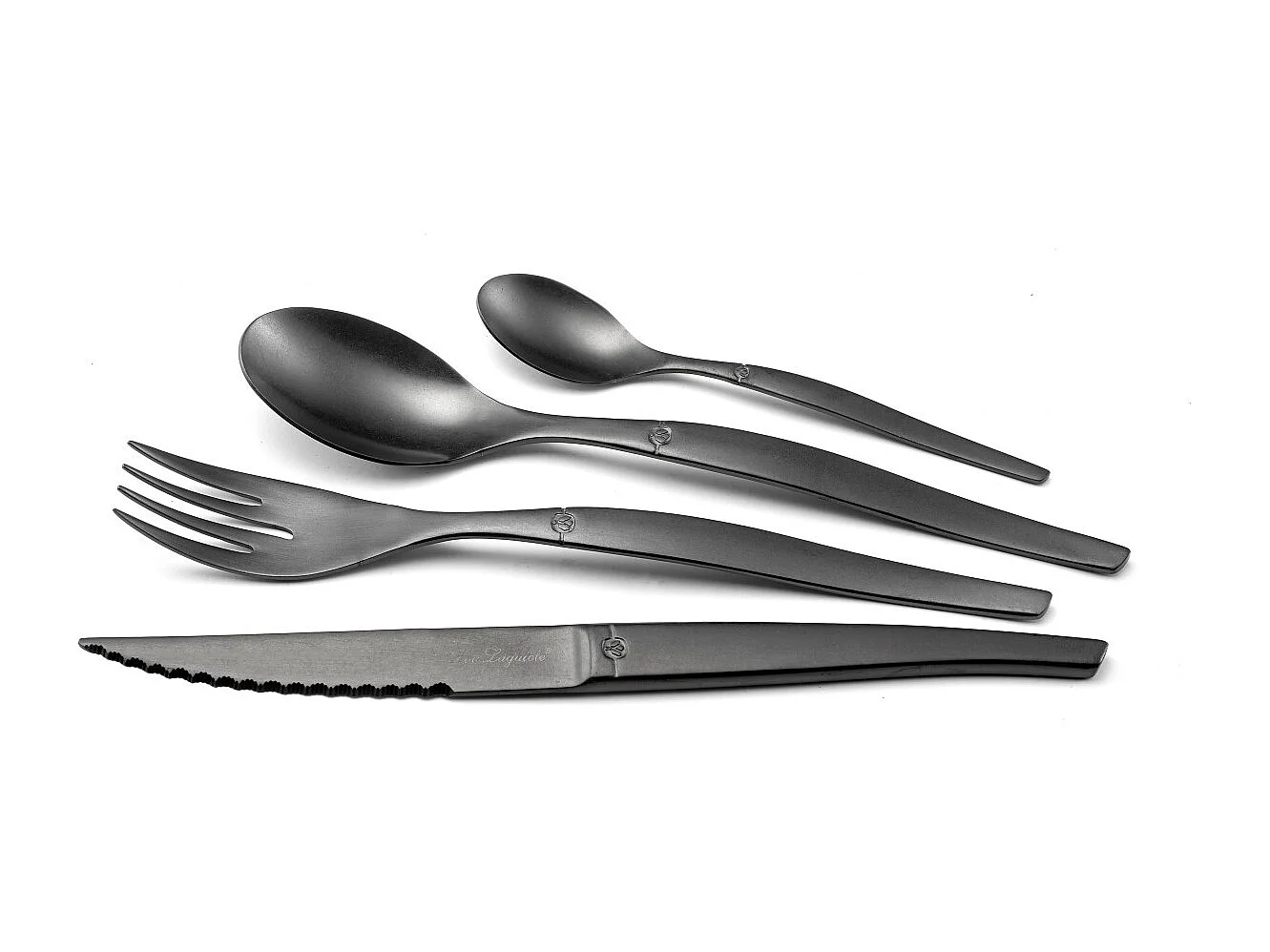 Cubertería de 24 piezas Lou Laguiole Montana Noir - Mango de cristal negro, hoja de acero inoxidable microdentada