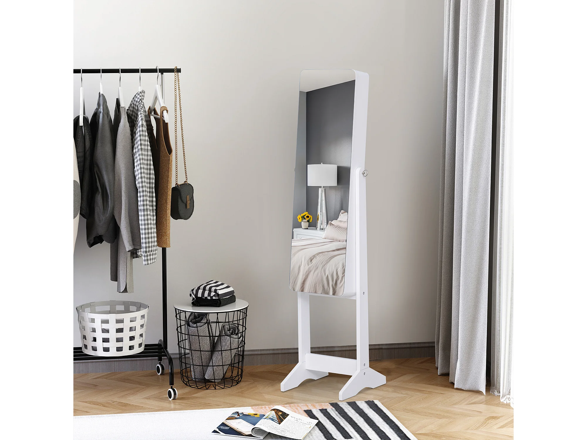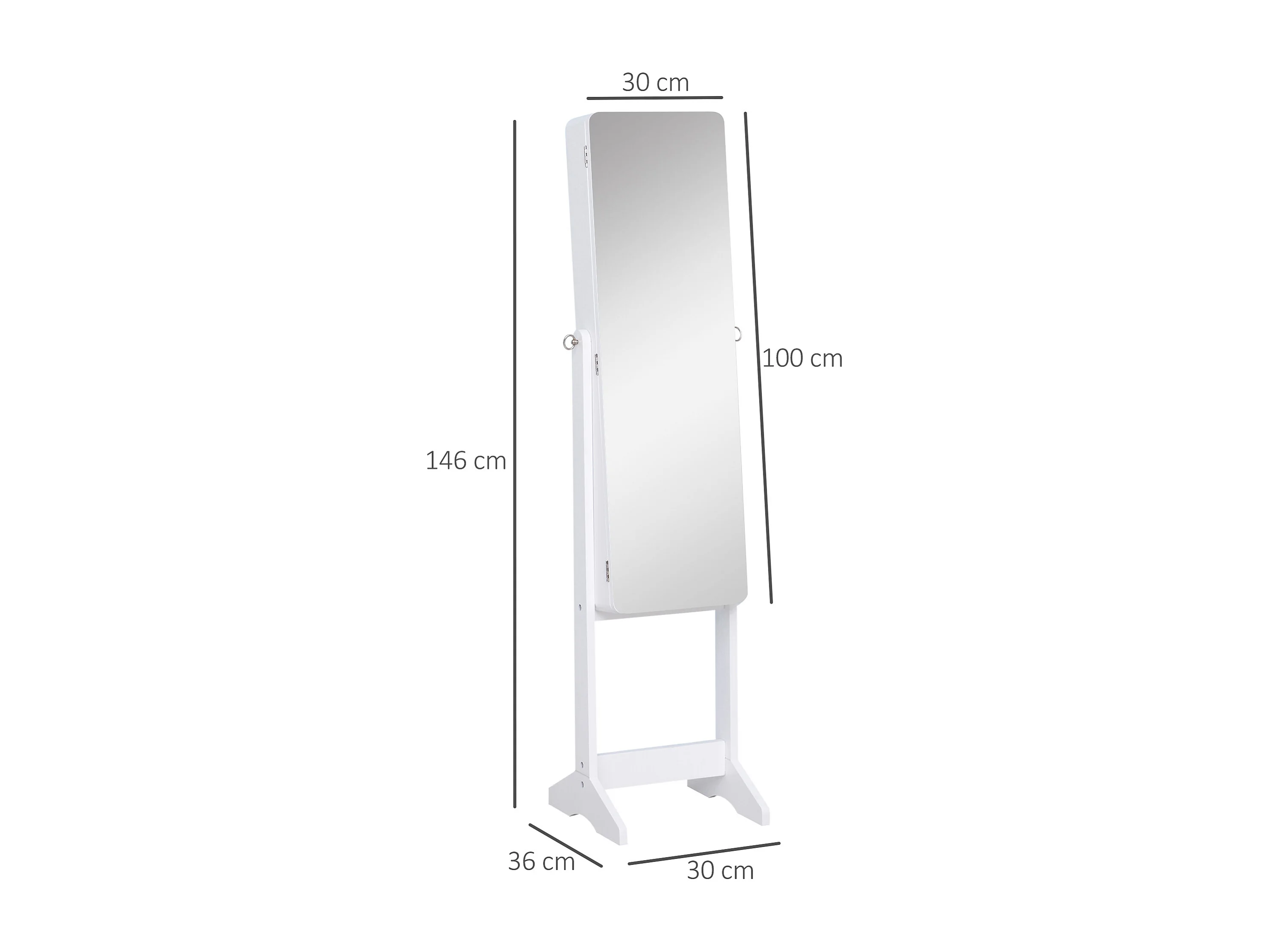 Espejo joyero de pie blanco 45x36x150cm HOMCOM
