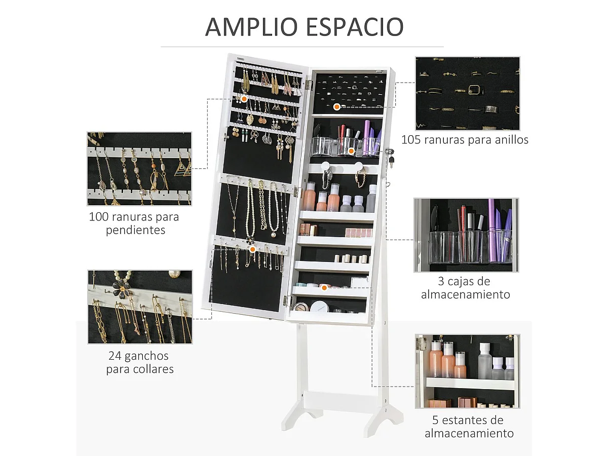 Espejo joyero de pie blanco 46x36.5x151.5 cm HOMCOM