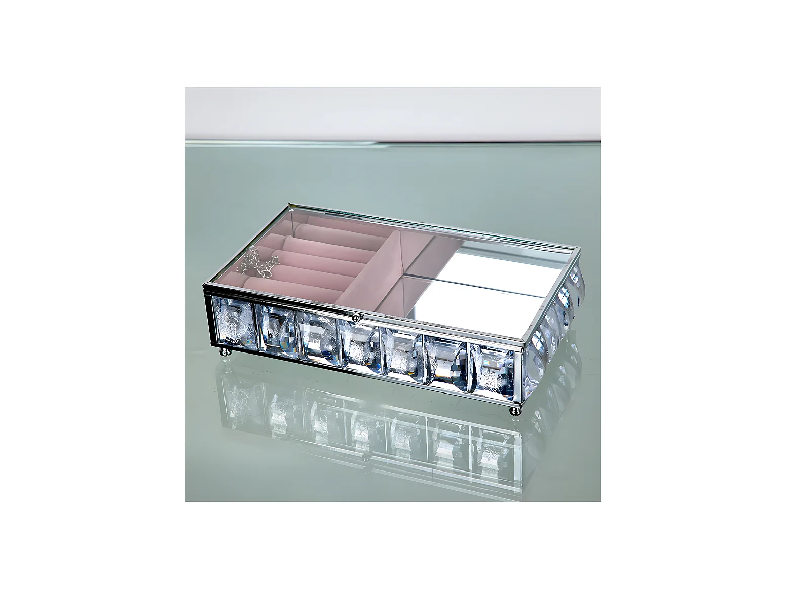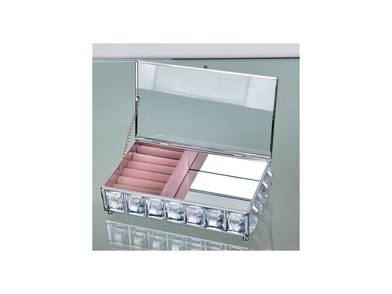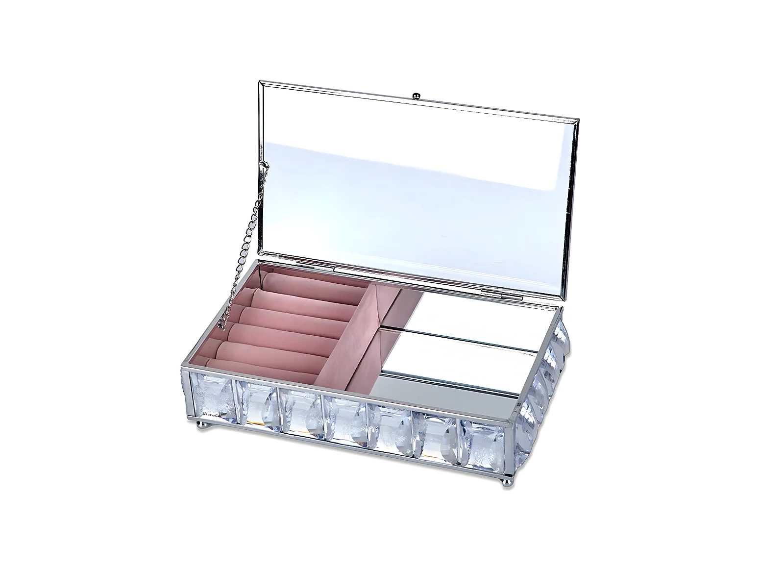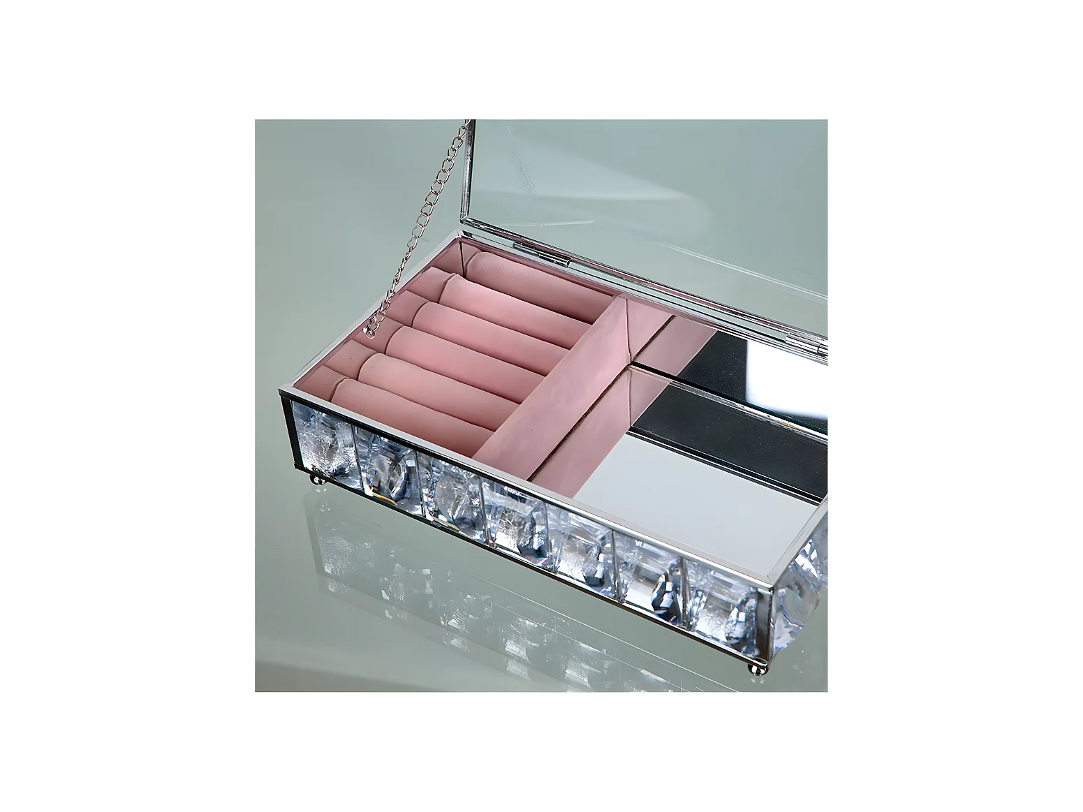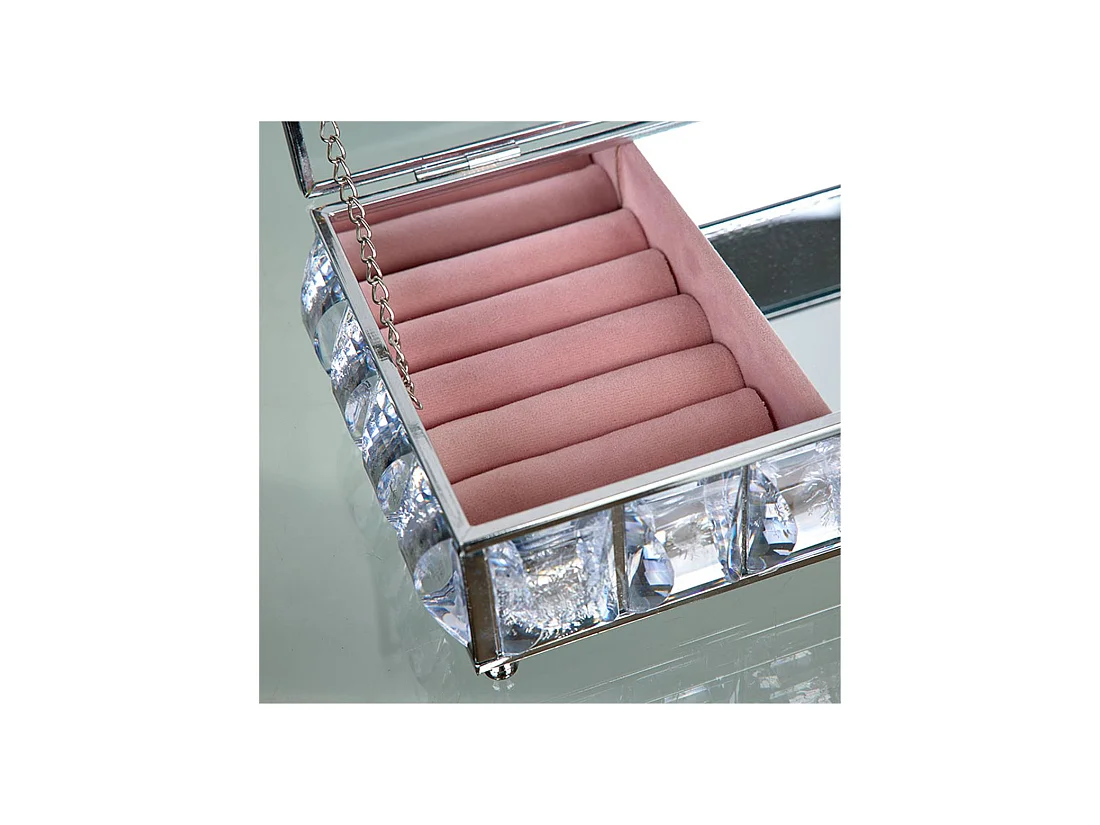 Joyero en terciopelo rosa brillantes acrilico lucy