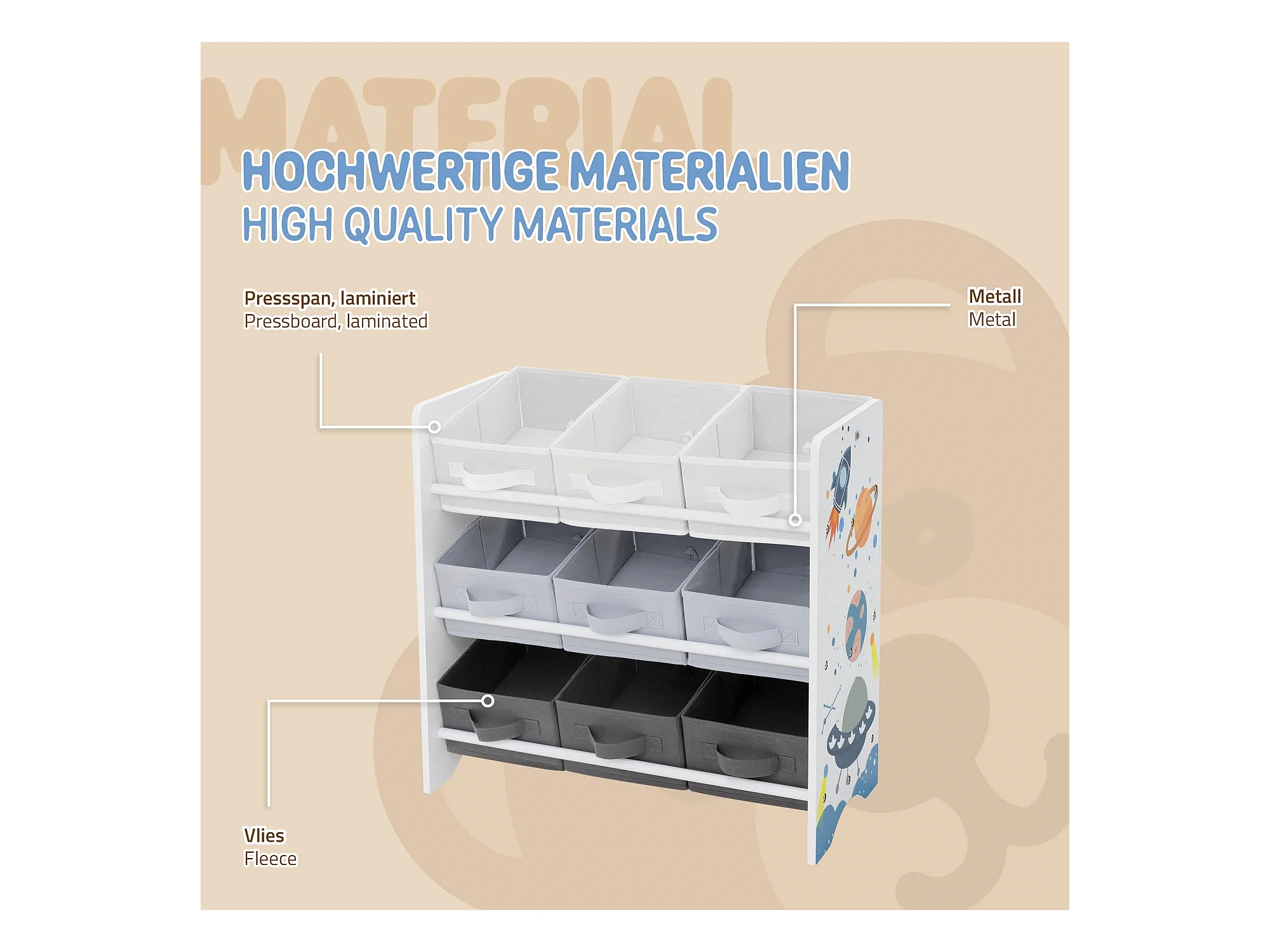 Joyz Estantería infantil blanca mueble con 3 compartimentos y 9 cajas extraíbles