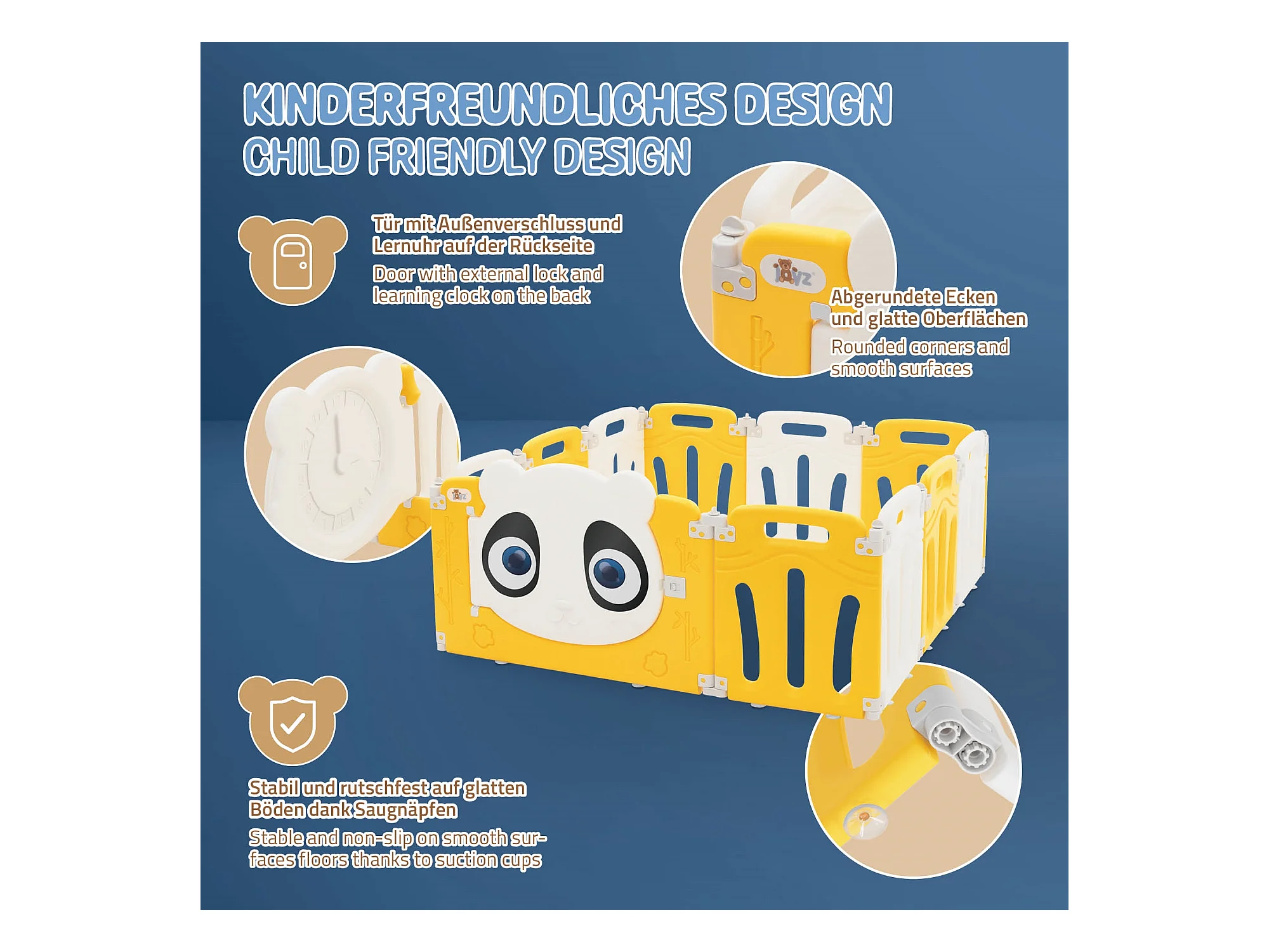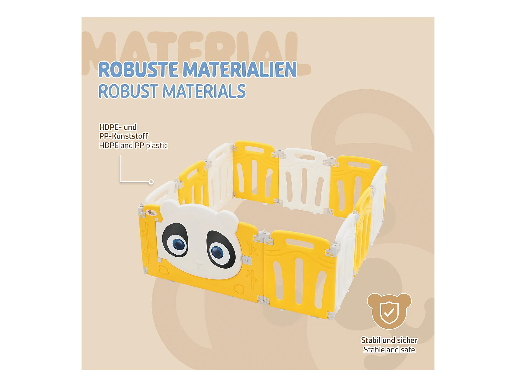 Joyz Parque infantil 240×240cm para bebés corralito infantil de plástico blanco amarillo diseño panda plegable actividades de interior/exterior