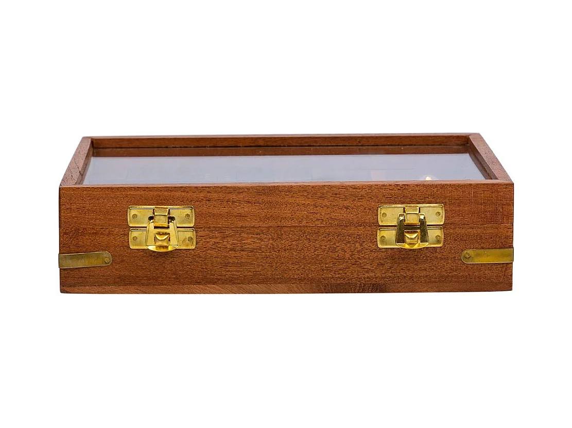 3 el línea con caja de madera marrón 12.5x12.5x5