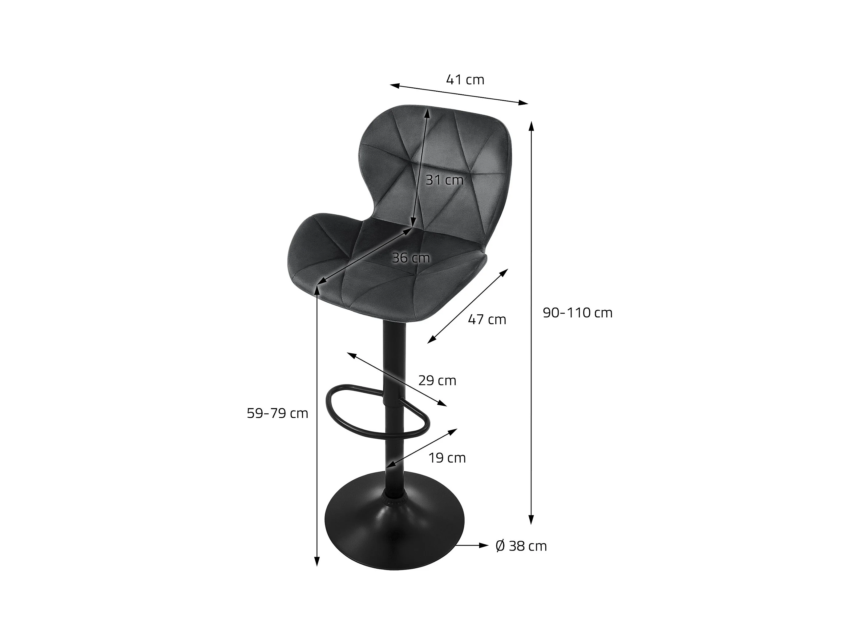 Zeta | Taburete de bar juego de 2 en terciopelo gris