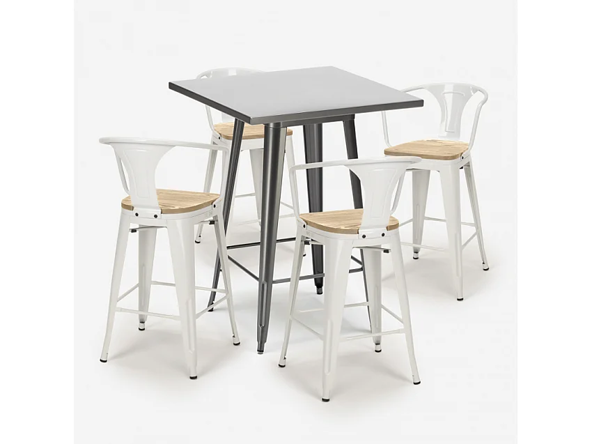 juego bar cocina industrial mesa 60 x 60 cm 4 taburetes bucket top light - Blanco