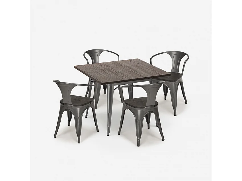 juego cocina industrial mesa 80 x 80 cm 4 sillas madera metal hustle wood - Gris Oscuro