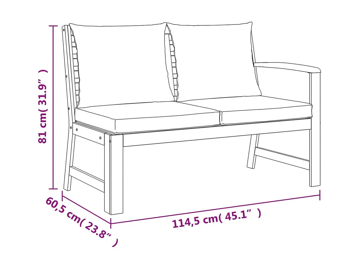 Juego comedor de jardín 4 piezas con cojines madera maciza acacia