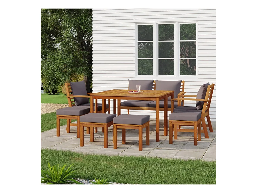 Juego comedor jardín con cojines 9 piezas madera maciza acacia