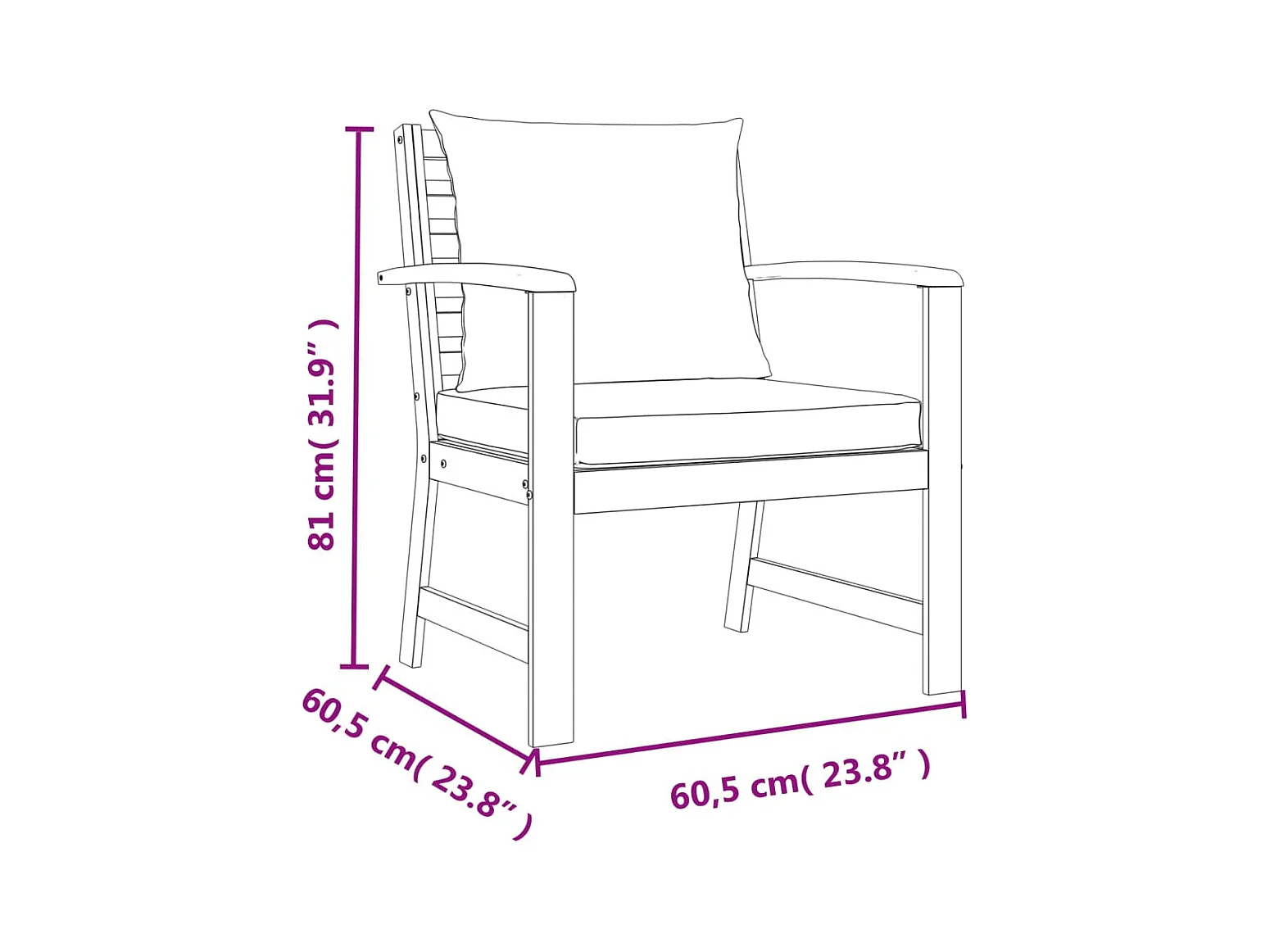 Juego comedor de jardín 6 pzas con cojines madera maciza acacia