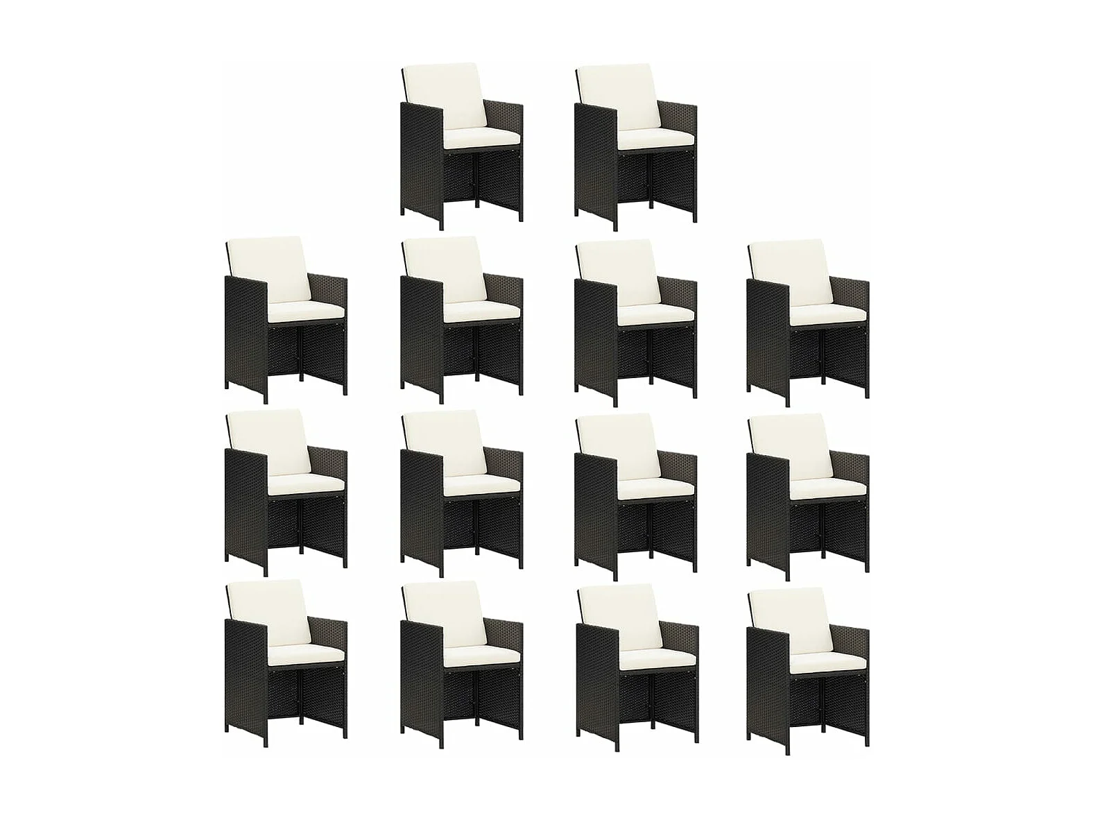 Juego comedor jardín 15 piezas con cojines ratán sintético negro