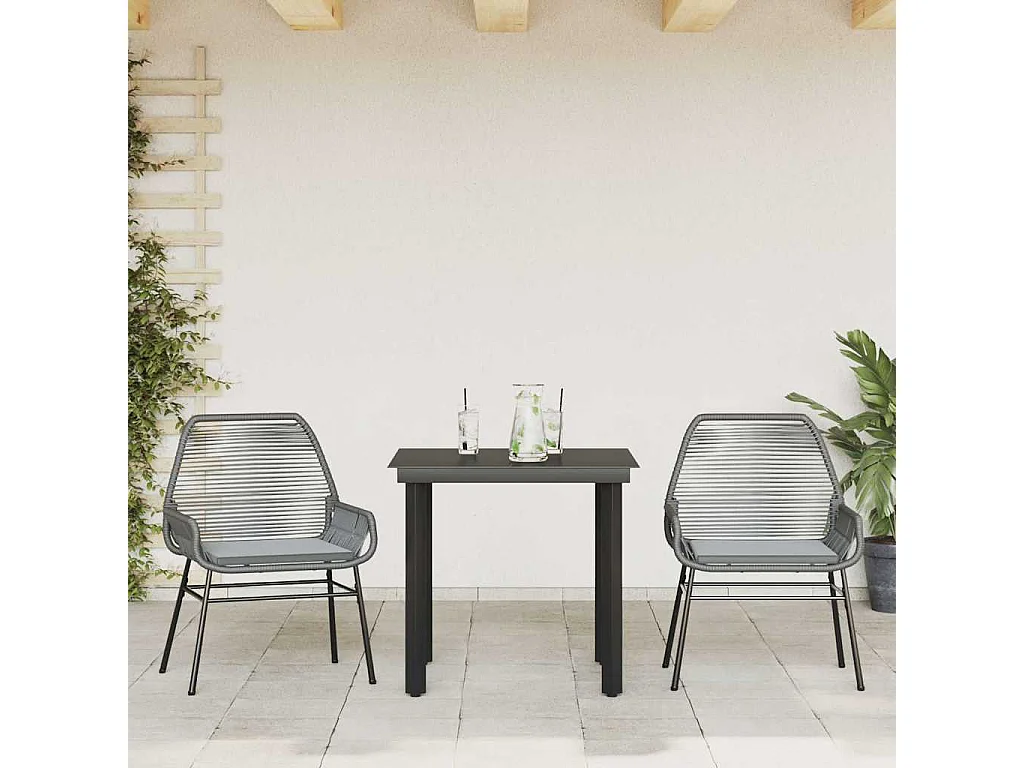 Juego comedor jardín 3 piezas cojines ratán sintético vidrio gris