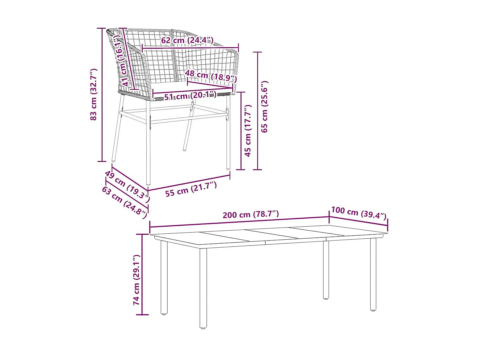 Juego comedor jardín 9 piezas cojines ratán sintético marrón