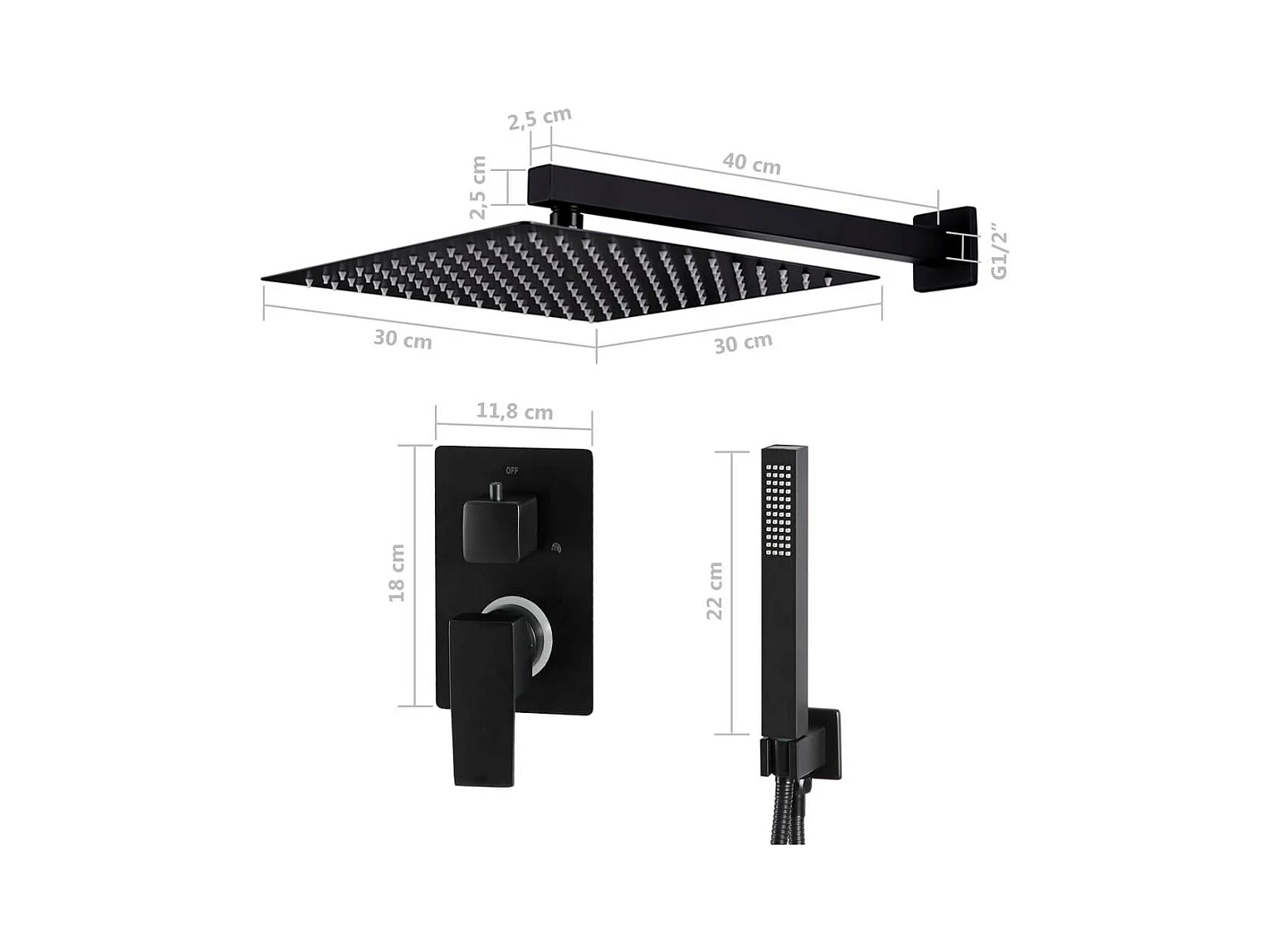 Juego completo de sistema de ducha con cabezal de acero inoxidable negro 02_0003109