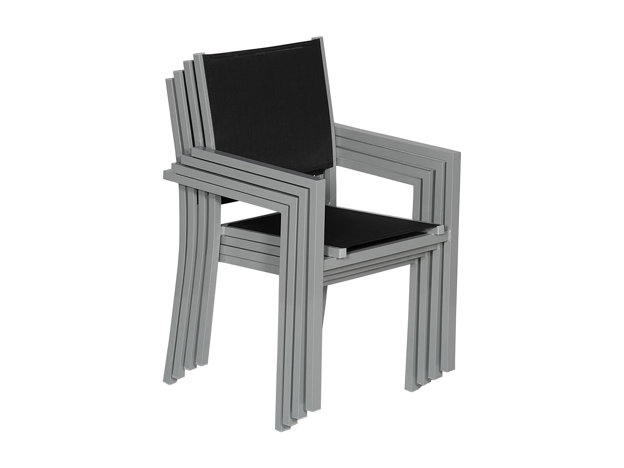 Juego de 10 sillas de aluminio gris textileno negro - HAPPY GARDEN