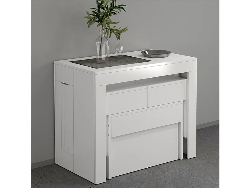 Juego de 2 bancos extensibles 66 - 290 cm para mesa de comedor Pratika A + B - Blanco brillante