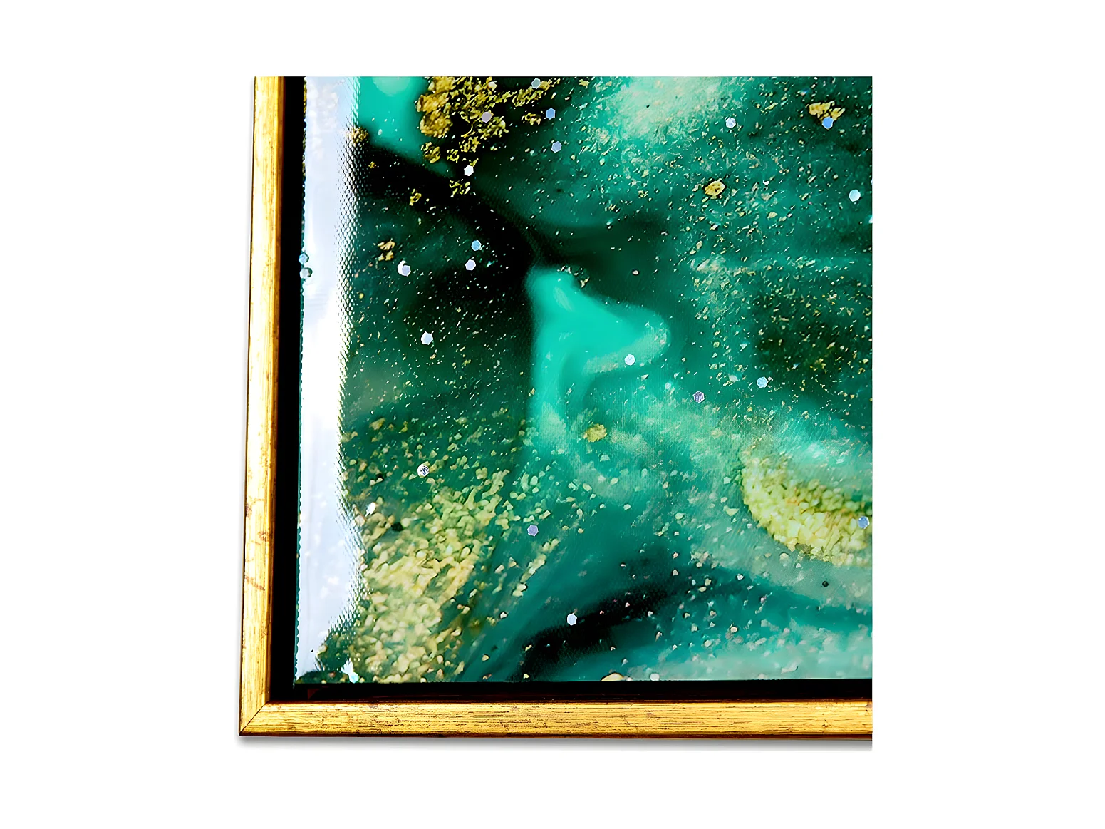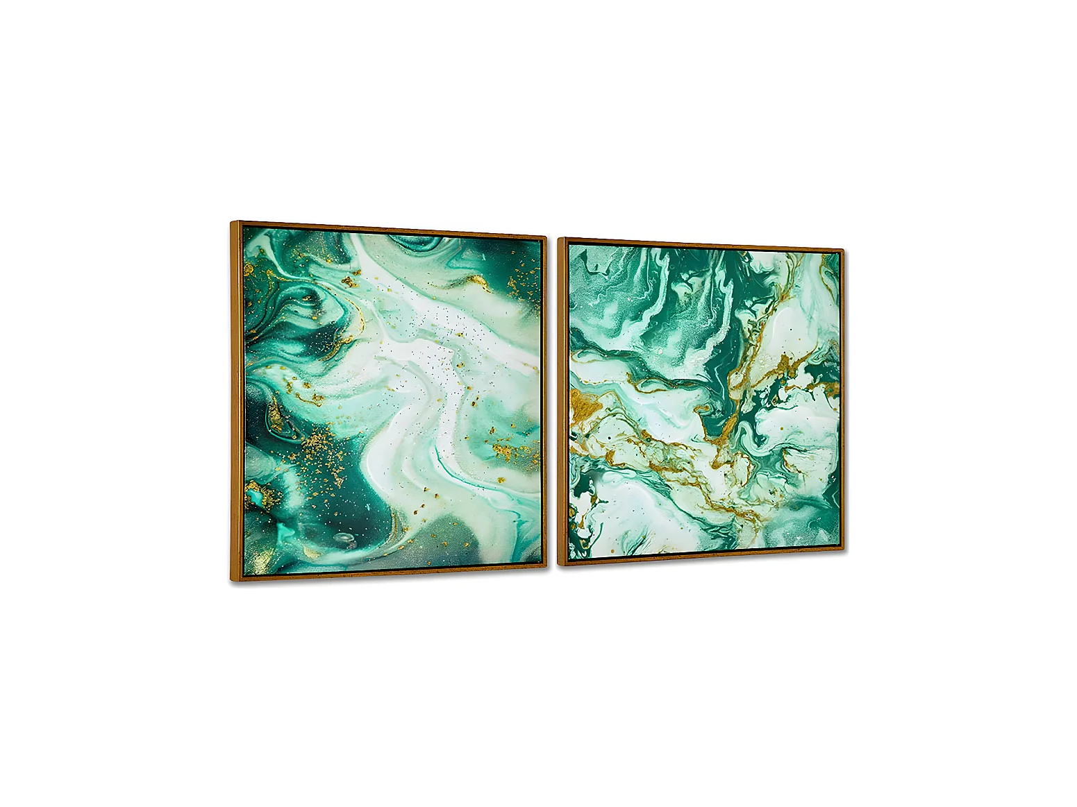 Juego de 2 cuadros 60*60*3.5 marco brillo mneral azul y verde milar