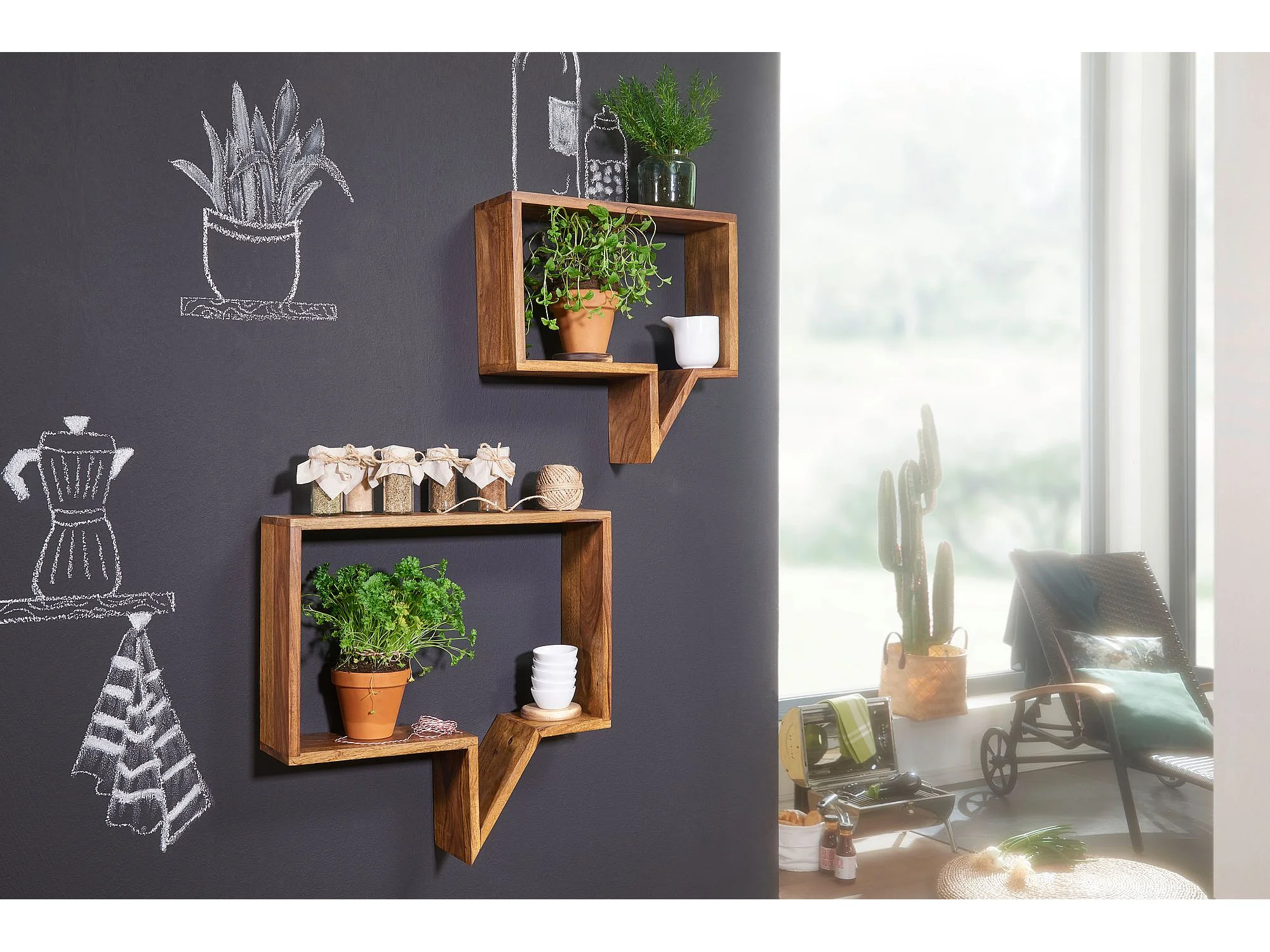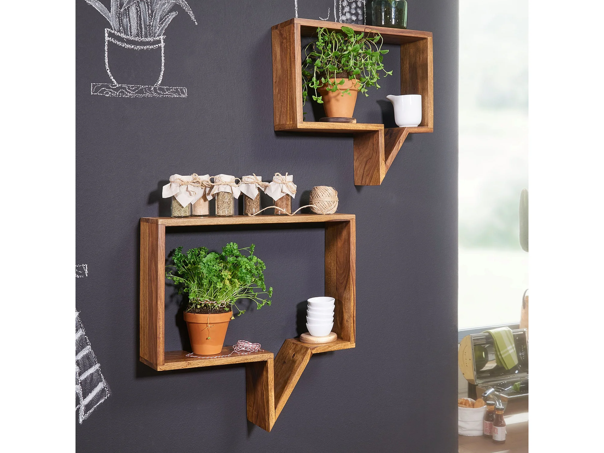 juego de 2 estantes de pared MUMBAI madera maciza sheesham estante de madera estilo casa de campo