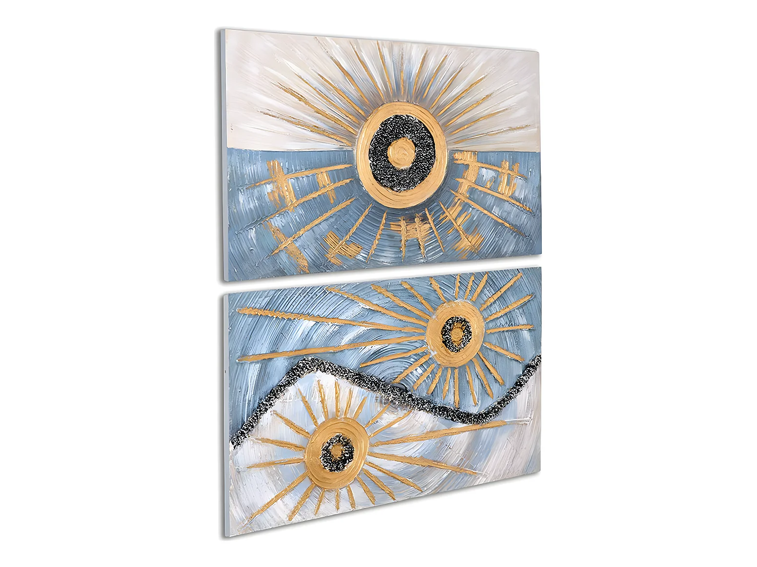 Juego de 2 lienzos abstractos con soles, pintados a manos, 60*100*3 abril