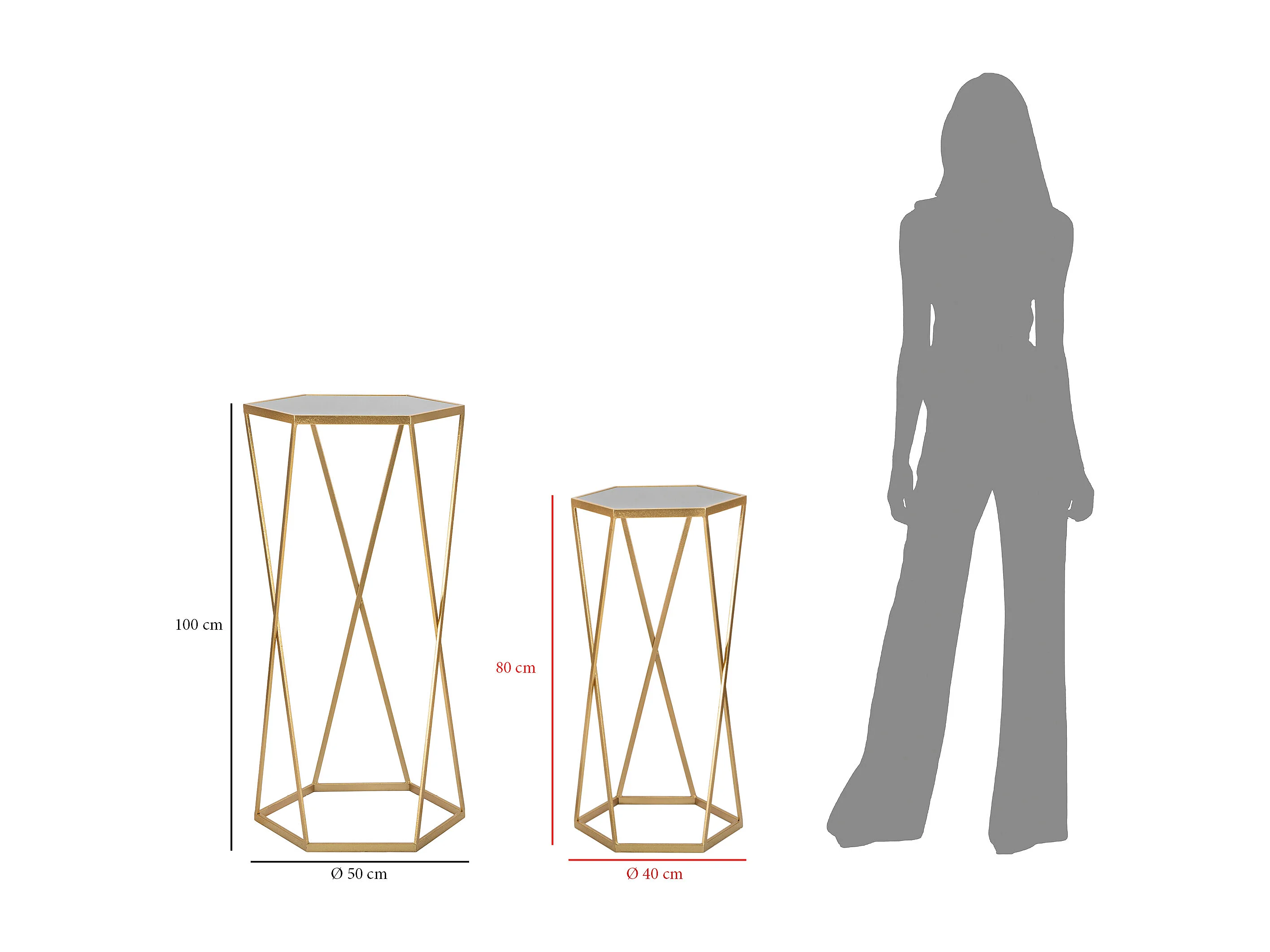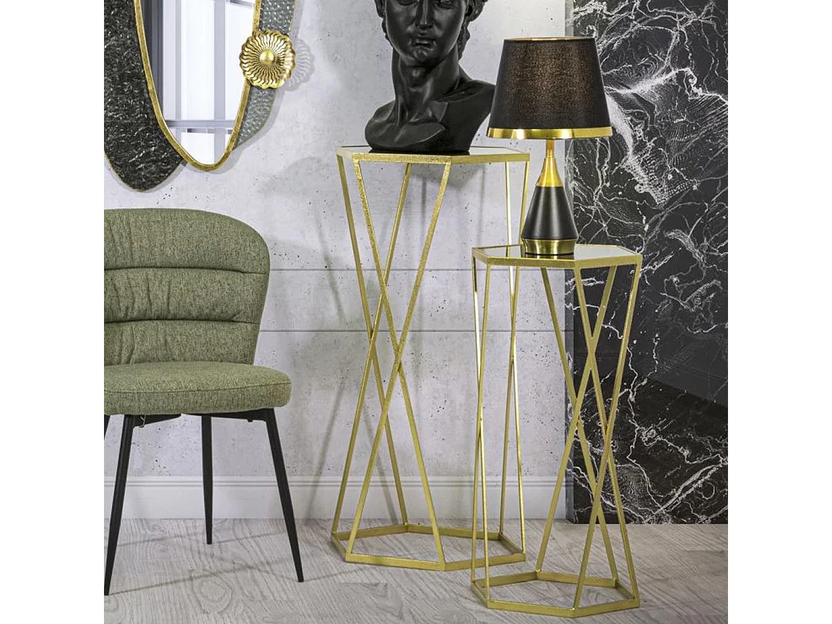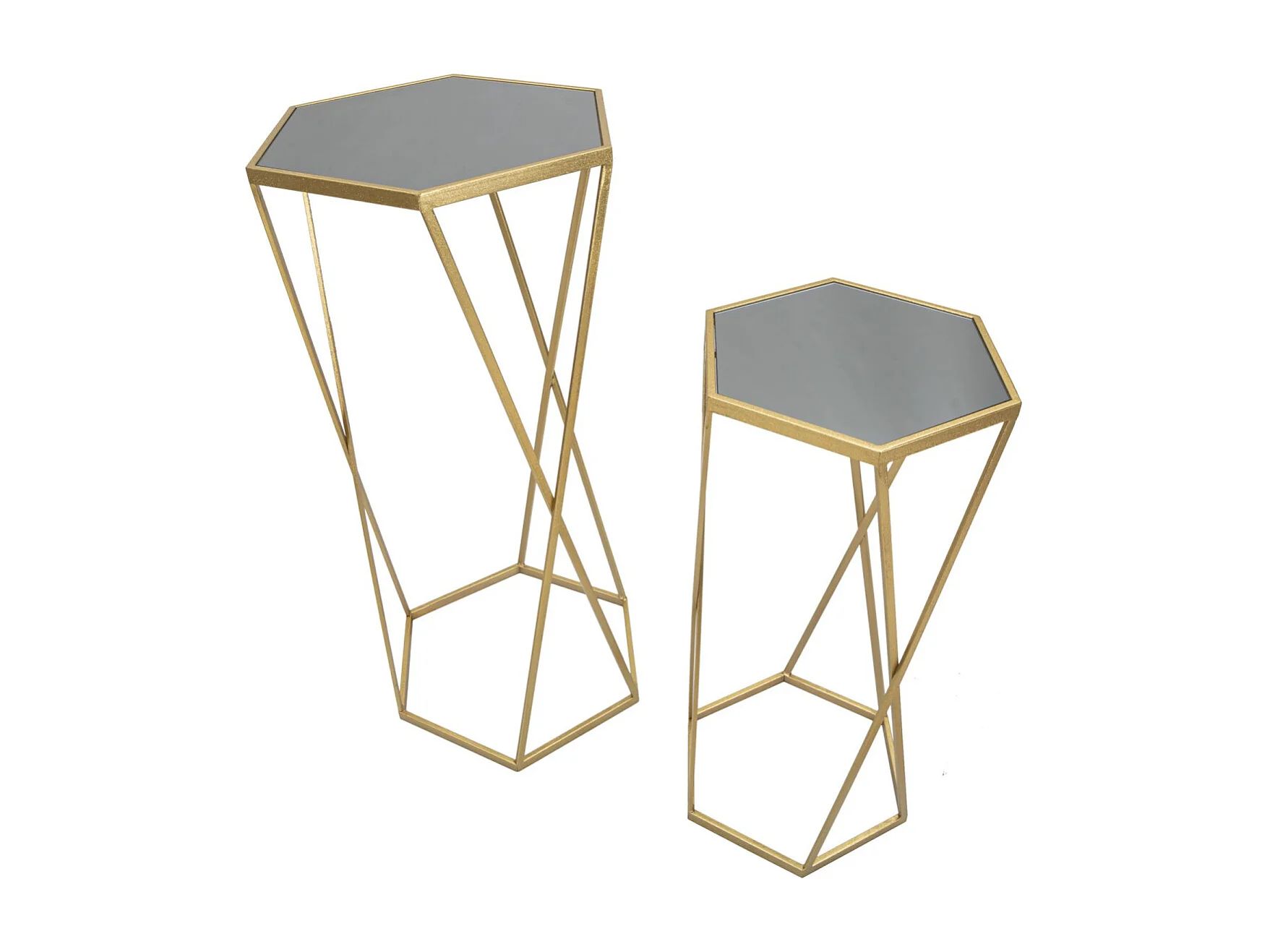Juego de 2 mesas auxiliares hexagonales de metal dorado y espejo Esagonal