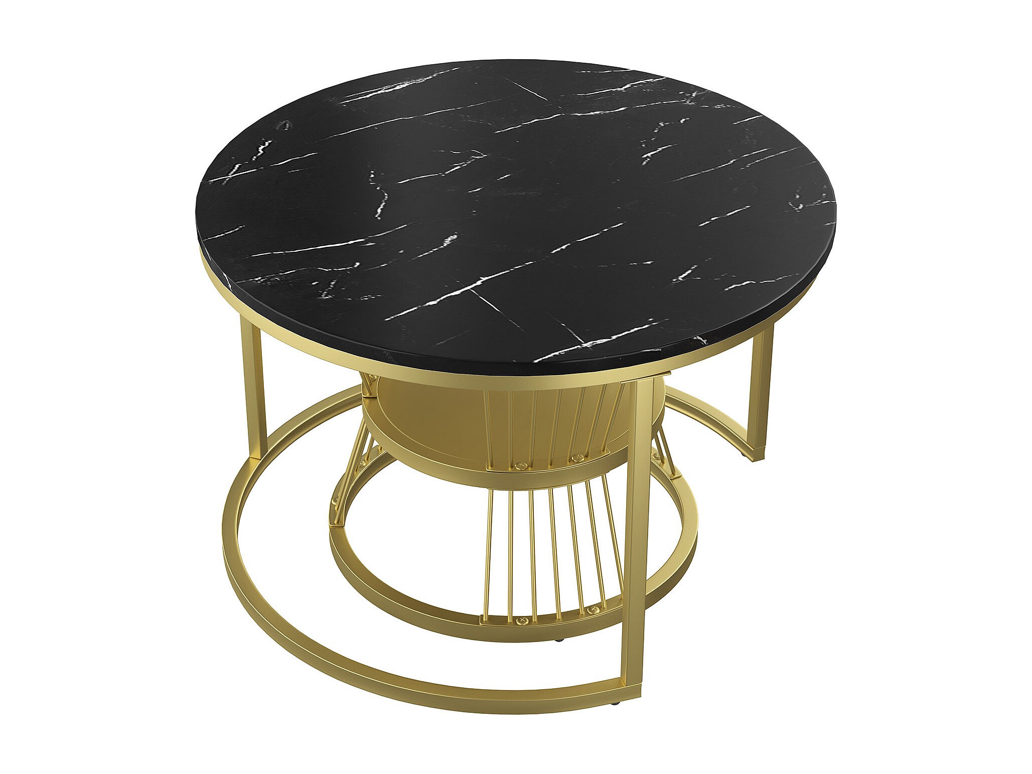 Juego de 2 mesas de centro redondas modernas de mármol y metal, elegante mesa auxiliar para sala de estar, oficina y balcón.