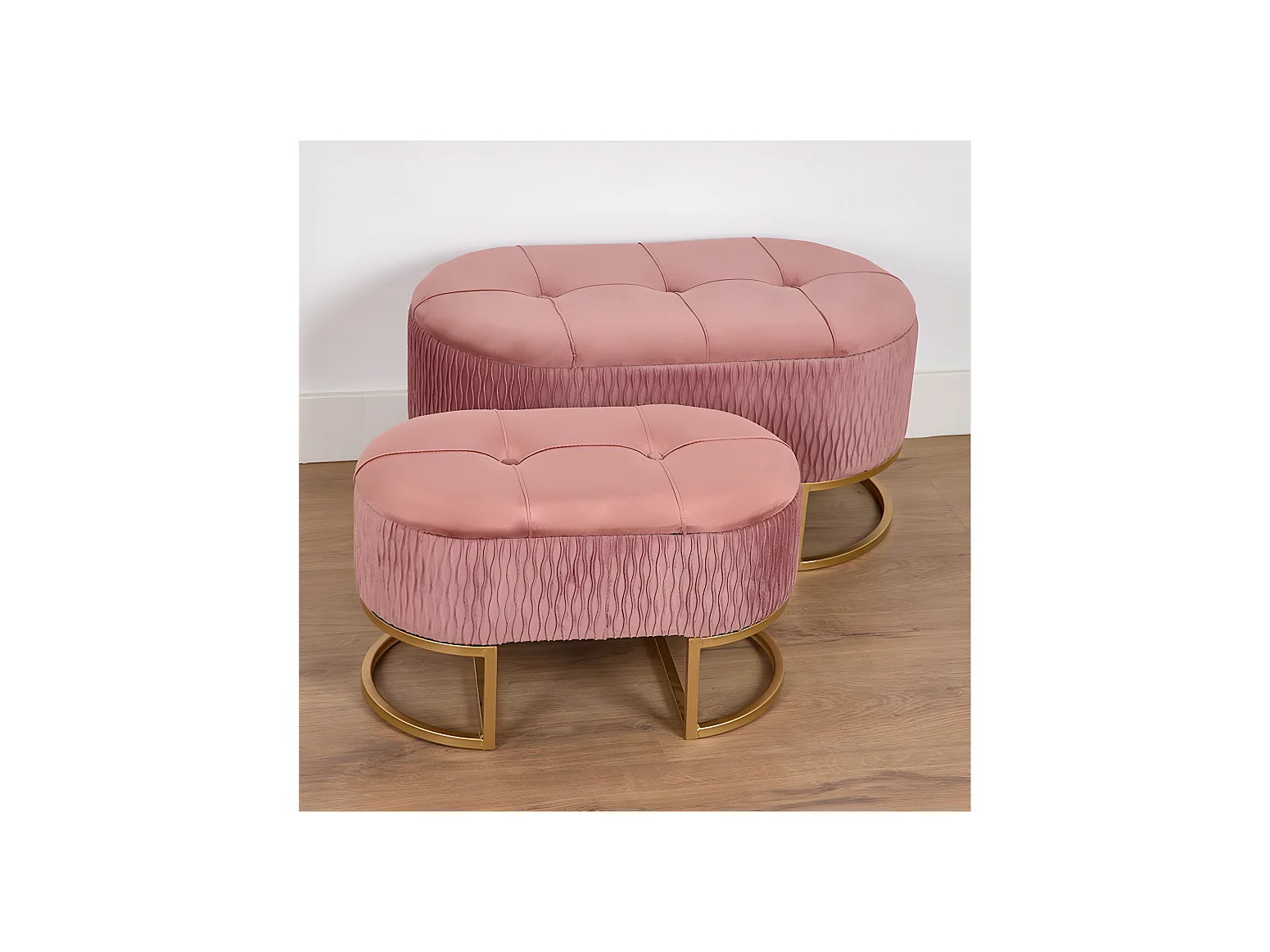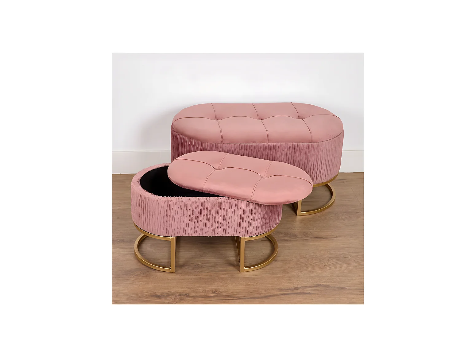 Juego de 2 pies de cama con almacenaje y terciopelo rosa sisi