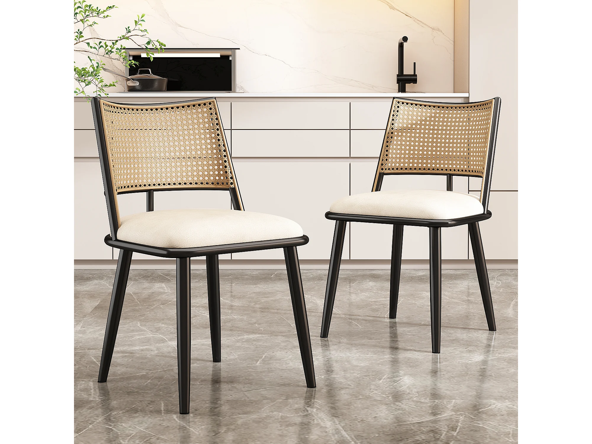 Juego de 2 sillas de comedor - 50 x 48 x 80 cm - asiento de poliuretano - respaldo de ratán - ratán - negro