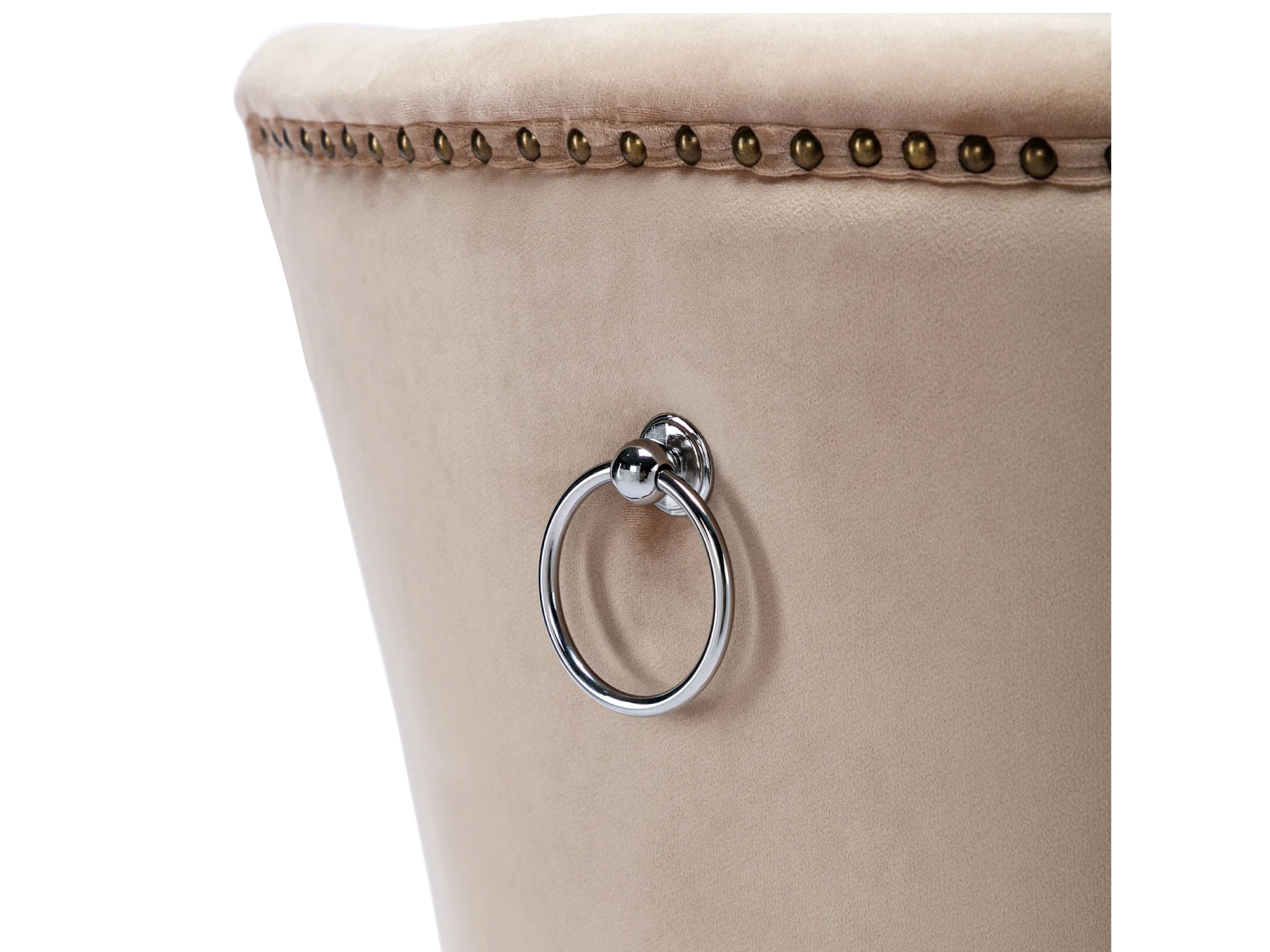 Juego de 2 sillas de comedor - asientos tapizados adornados con tachuelas decorativas y patas de madera maciza - terciopelo beige
