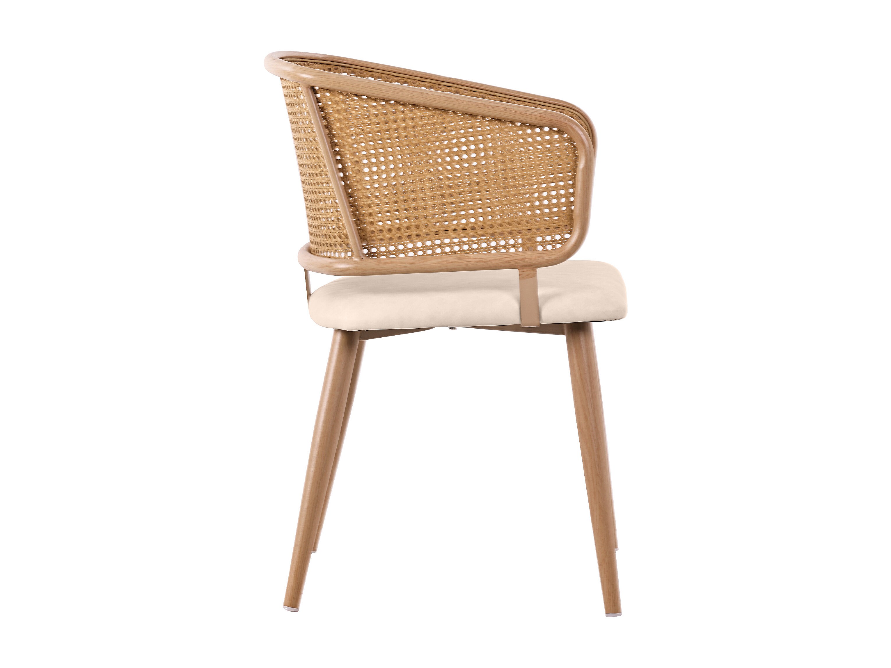 Juego de 2 sillas de comedor con respaldo de ratán, cojines de asiento de terciopelo, color beige.