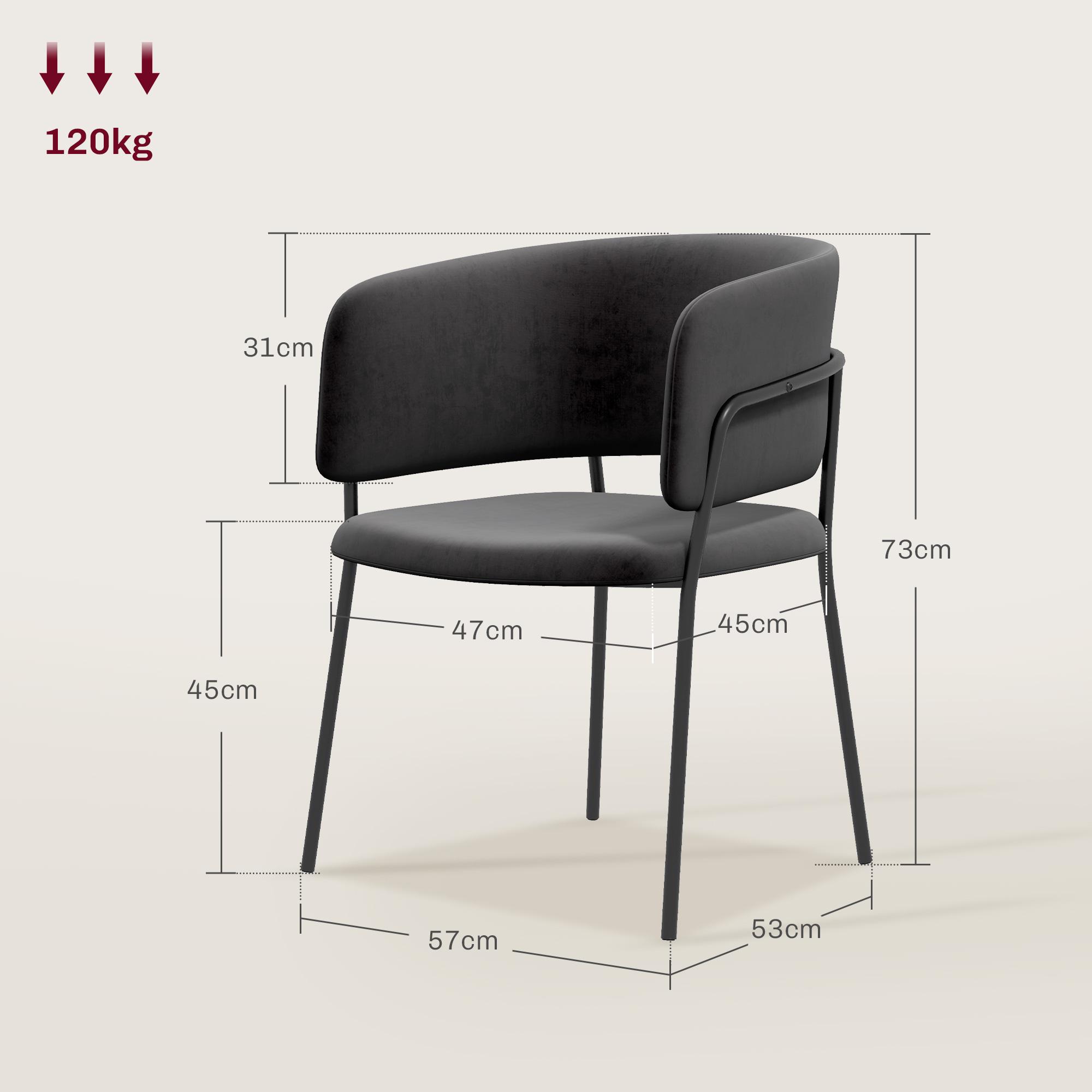 Juego de 2 sillas de comedor de terciopelo con reposabrazos y patas de metal para cocina y salón, gris, 57 x 53 x 73 cm