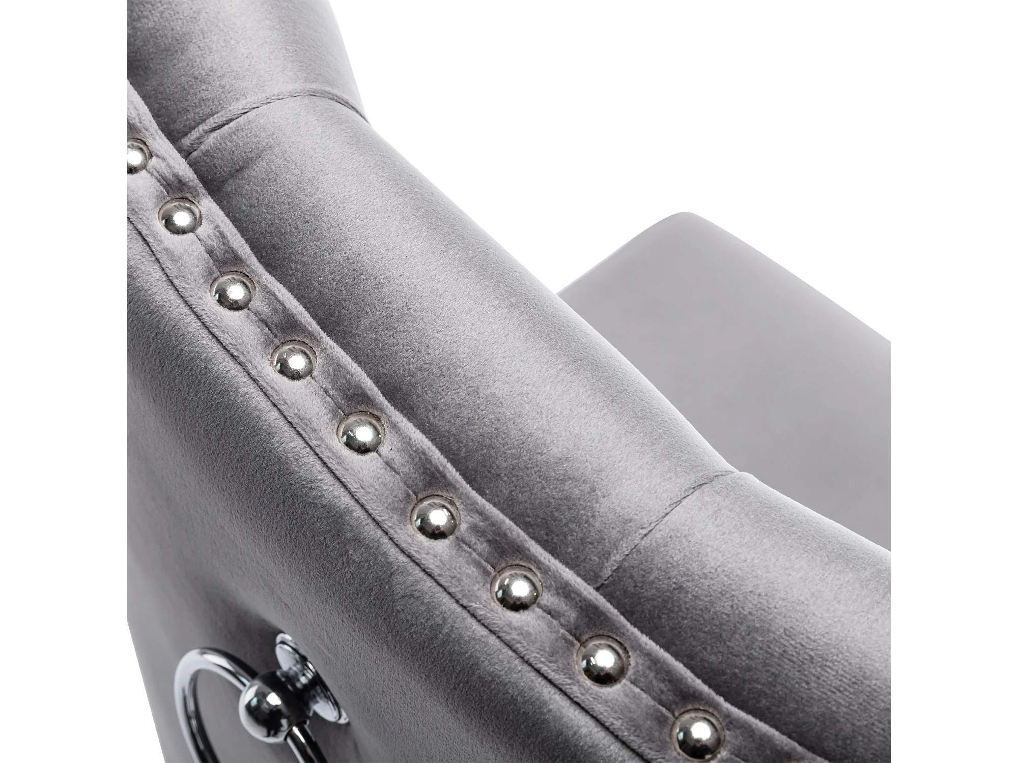 Juego de 2 sillas de comedor en chenilla gris con tachuelas decorativas y respaldo, patas de madera