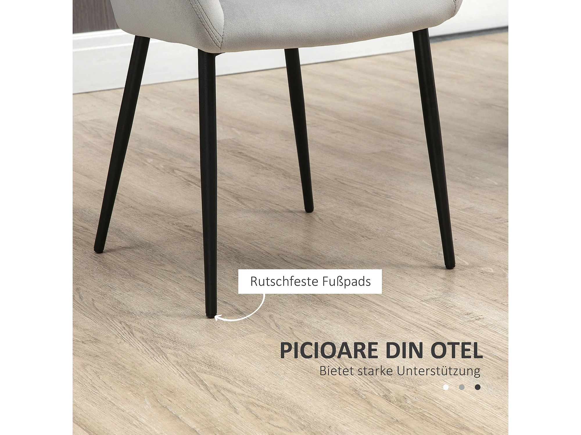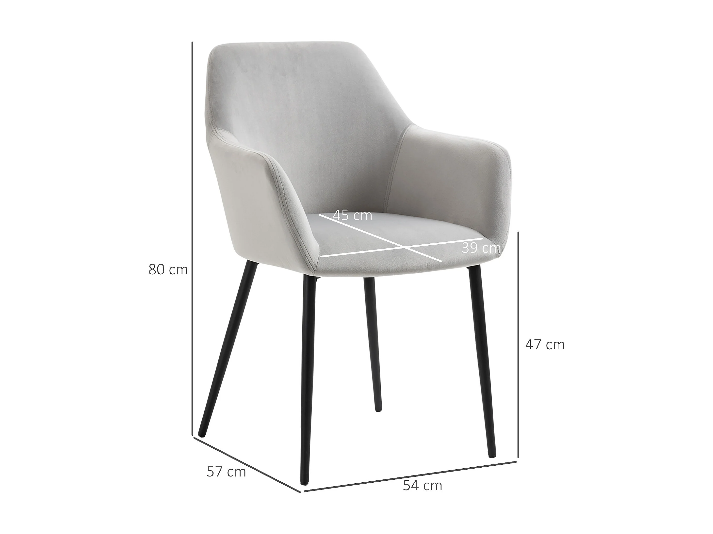 Juego de 2 sillas de comedor de terciopelo gris claro con patas de acero, silla de salón de cocina de diseño 54x57x80 cm