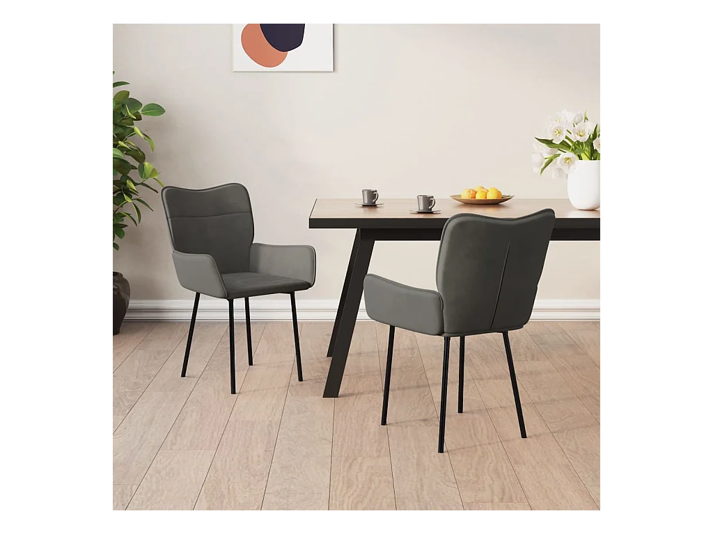 Juego de 2 sillas de comedor de terciopelo gris oscuro