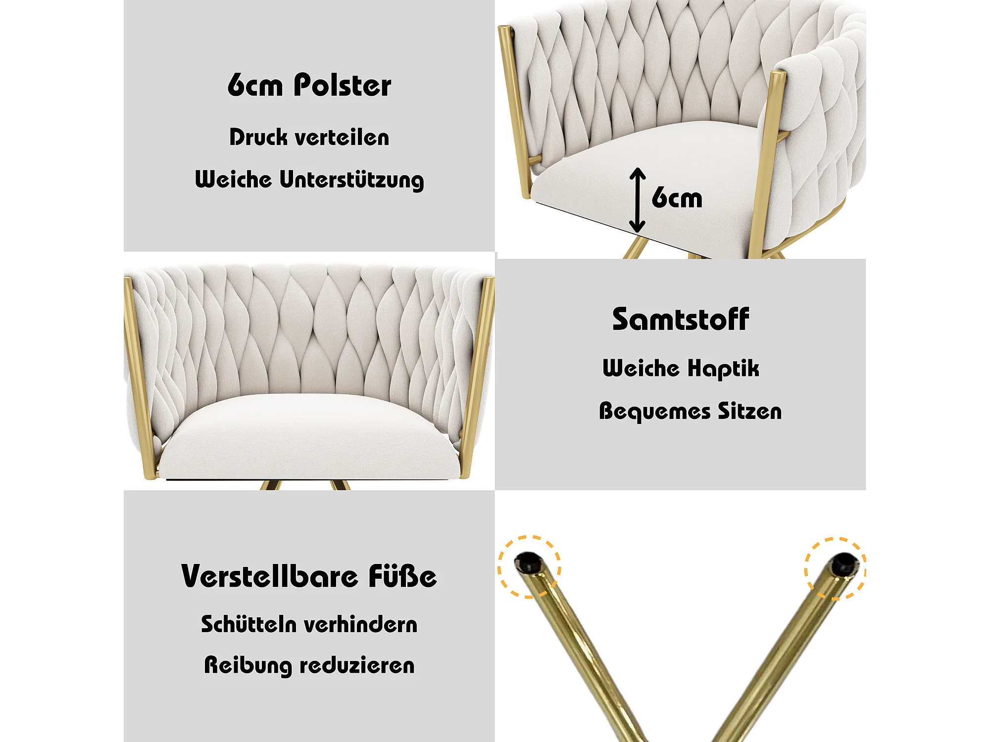Juego de 2 sillas de comedor giratorias con reposabrazos - 59 x 54 x 72 cm - Terciopelo - Beige + Oro