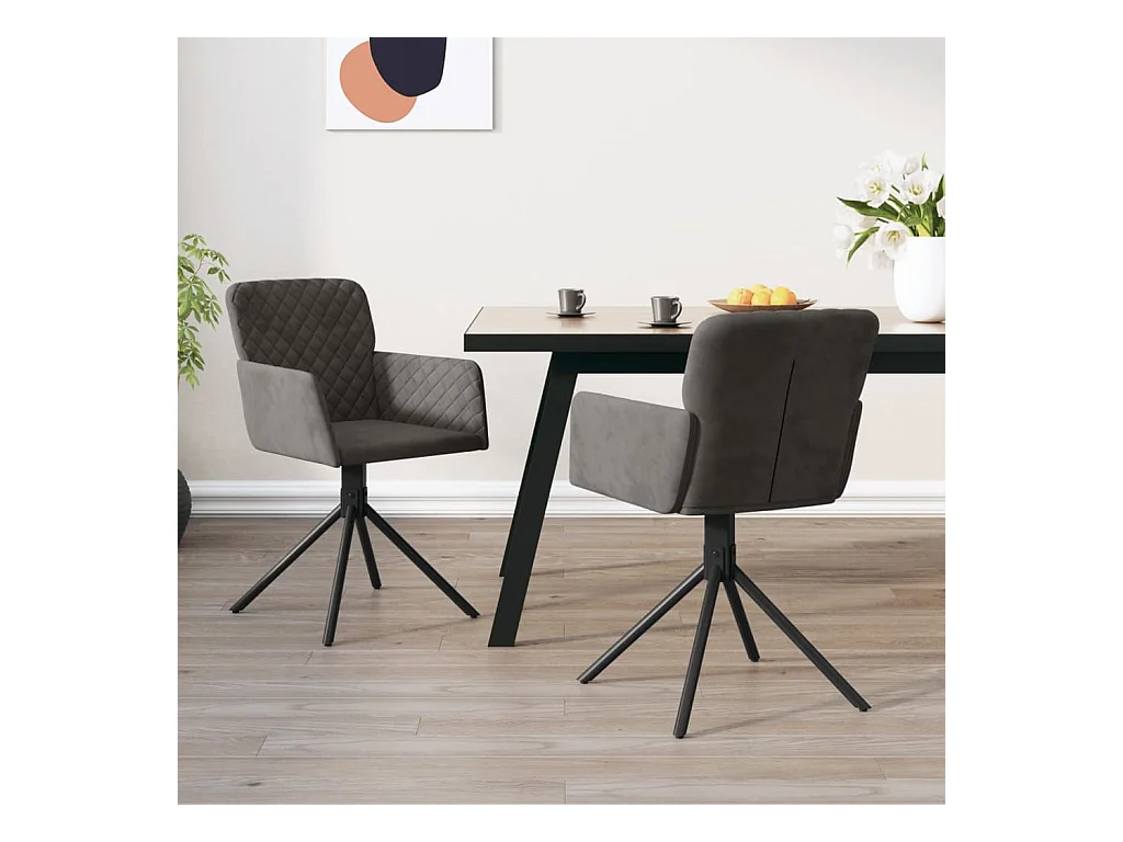 Juego de 2 sillas de comedor giratorias de terciopelo gris oscuro