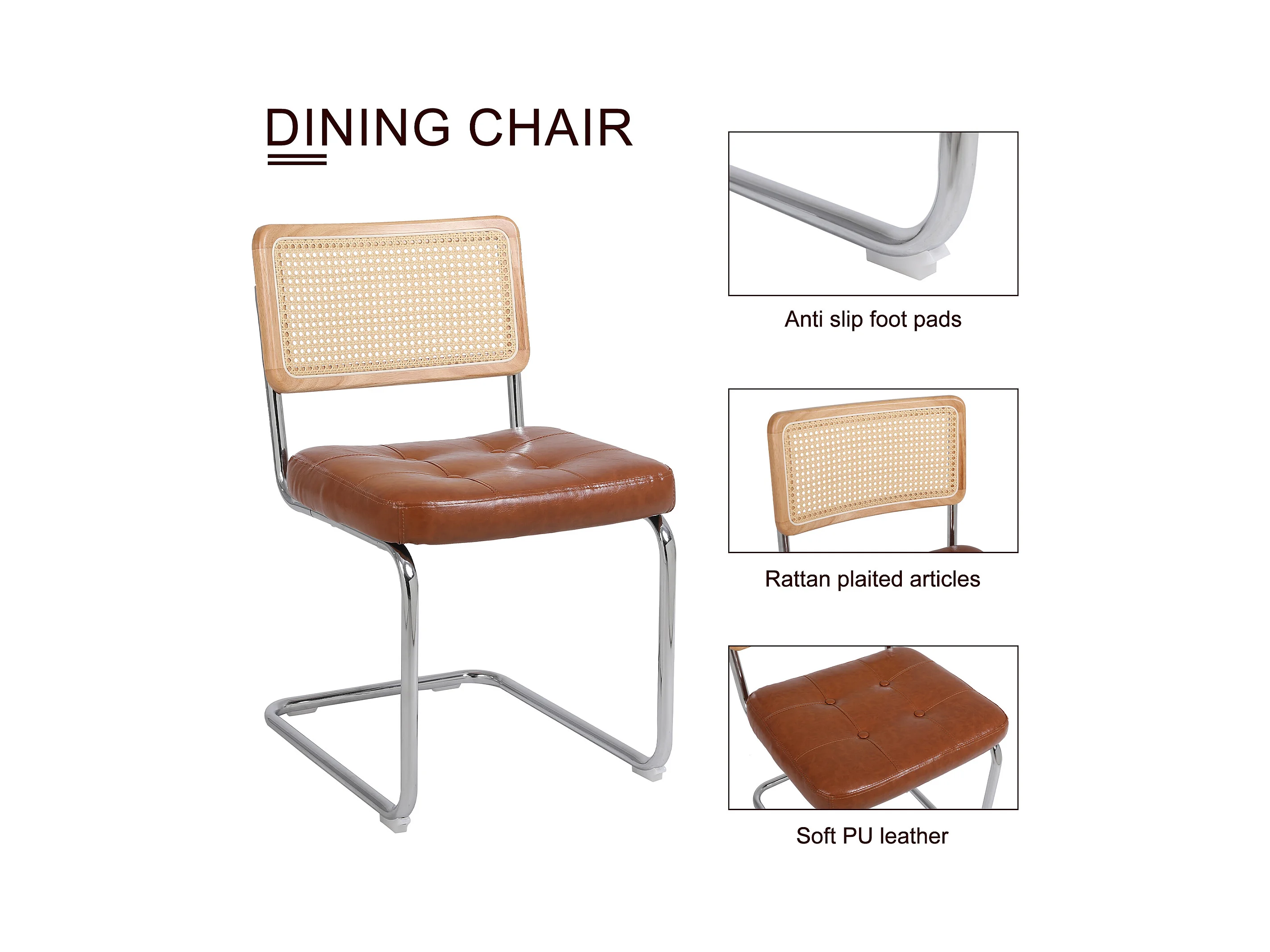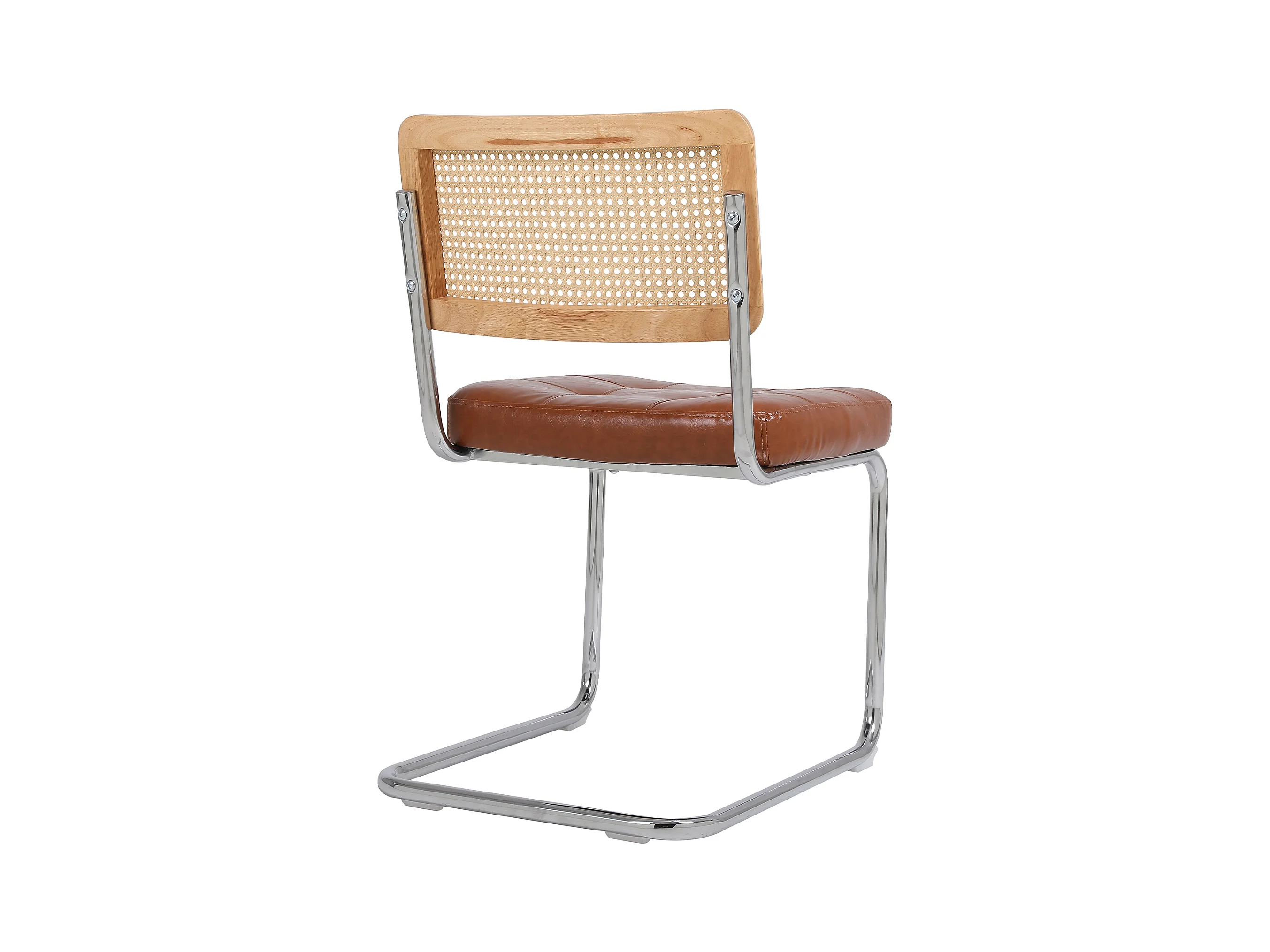 Juego de 2 sillas de comedor con respaldo de ratán y cojín de asiento de piel sintética, cómodas y transpirables.