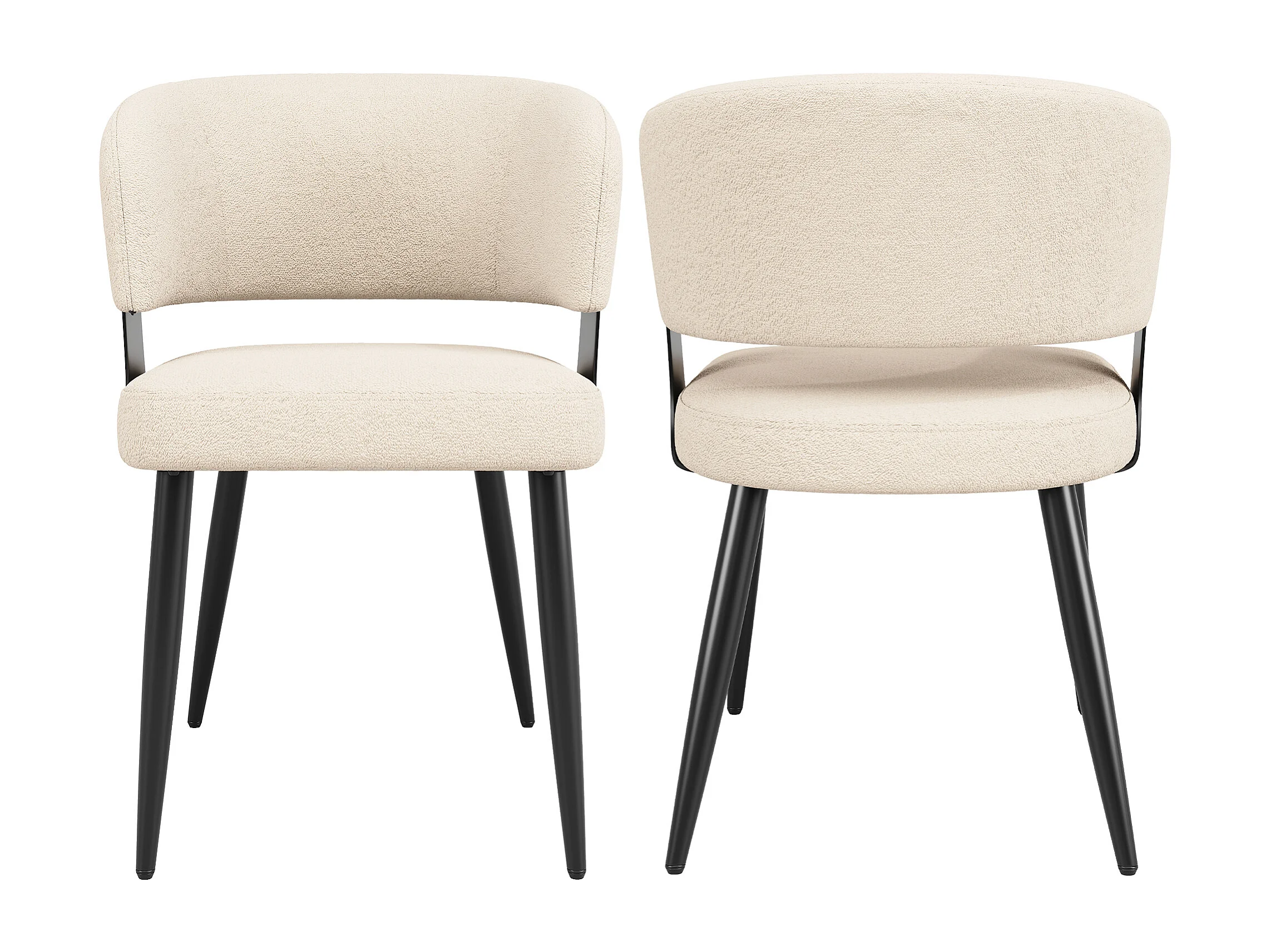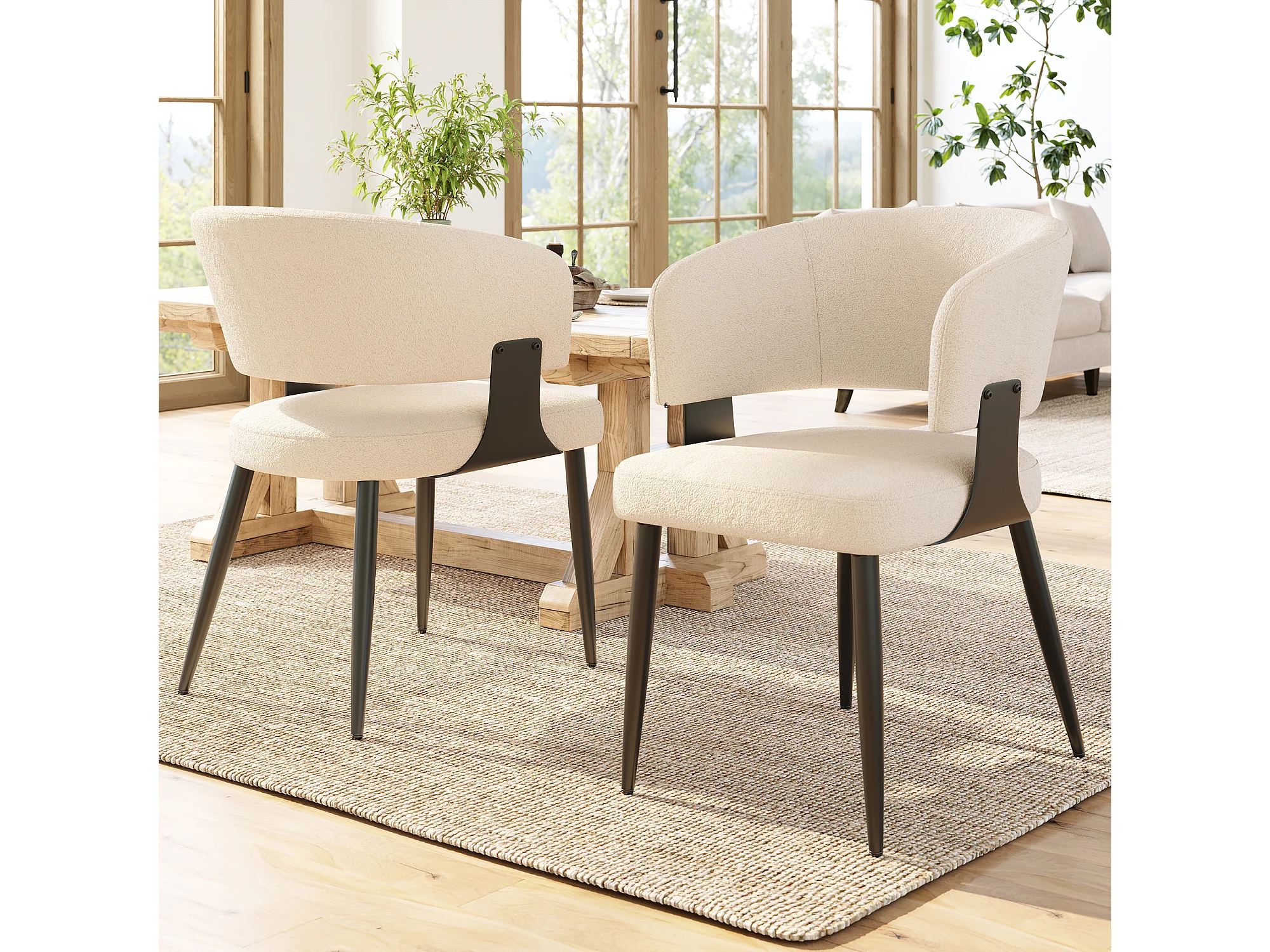 Juego de 2 sillas de comedor - Silla con respaldo curvo y reposabrazos - piel de cordero - beige
