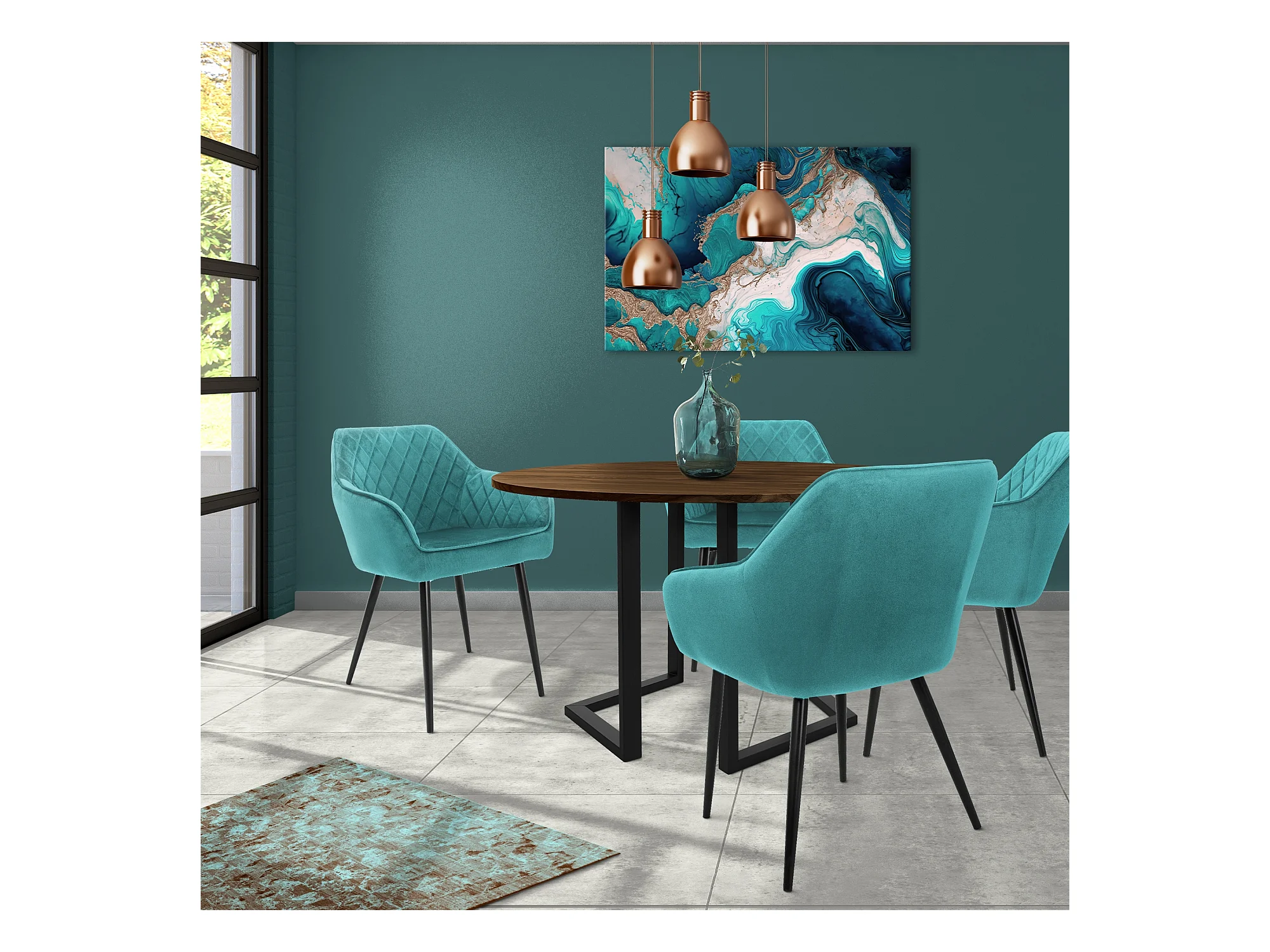 Silla azul turquesa